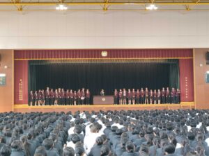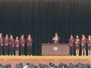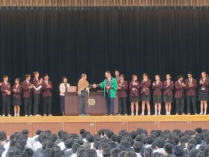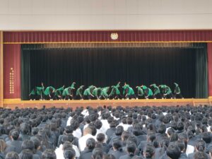 本日の歓迎会では、両校の代表教員および代表生徒によるスピーチの後、記念品の交換が行われました。さらに、本校ダンス部による「昌平よさこい」の披露もあり、会場は大いに盛り上がりました。