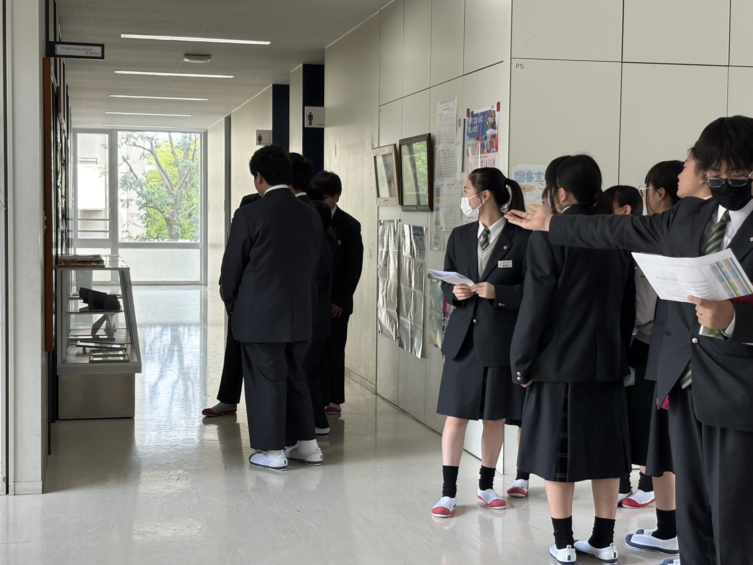 1限道徳の時間を使い、2年生が1年生を連れ、案内人となってキャンパスツアーを行いました。
