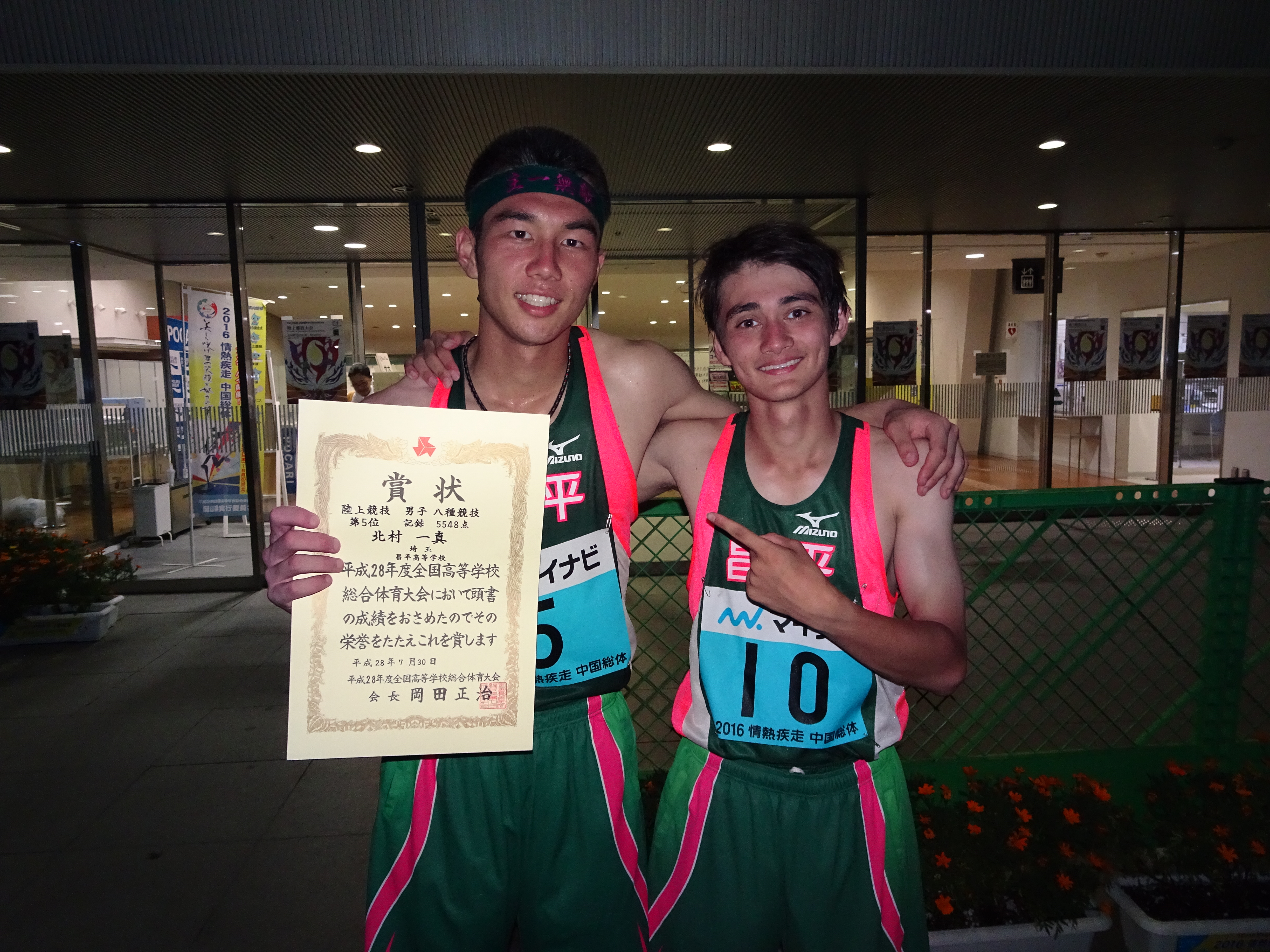 7月29日(金)より5日間岡山県シティーライトスタジアムで全国総体陸上競技大会が行われ、男子八種競技で2年生 北村 一真(さいたま大原中出身)が5548点の埼玉県高校新記録を出し5位入賞しました。その他ムーア アレクサンダー海(三郷早稲田中出身)が5414点で第10位、4×100mリレーは予選41秒03を出し予選通過するなど、チーム新、自己新を出し、猛暑の中の大会でしたが健闘することができました。