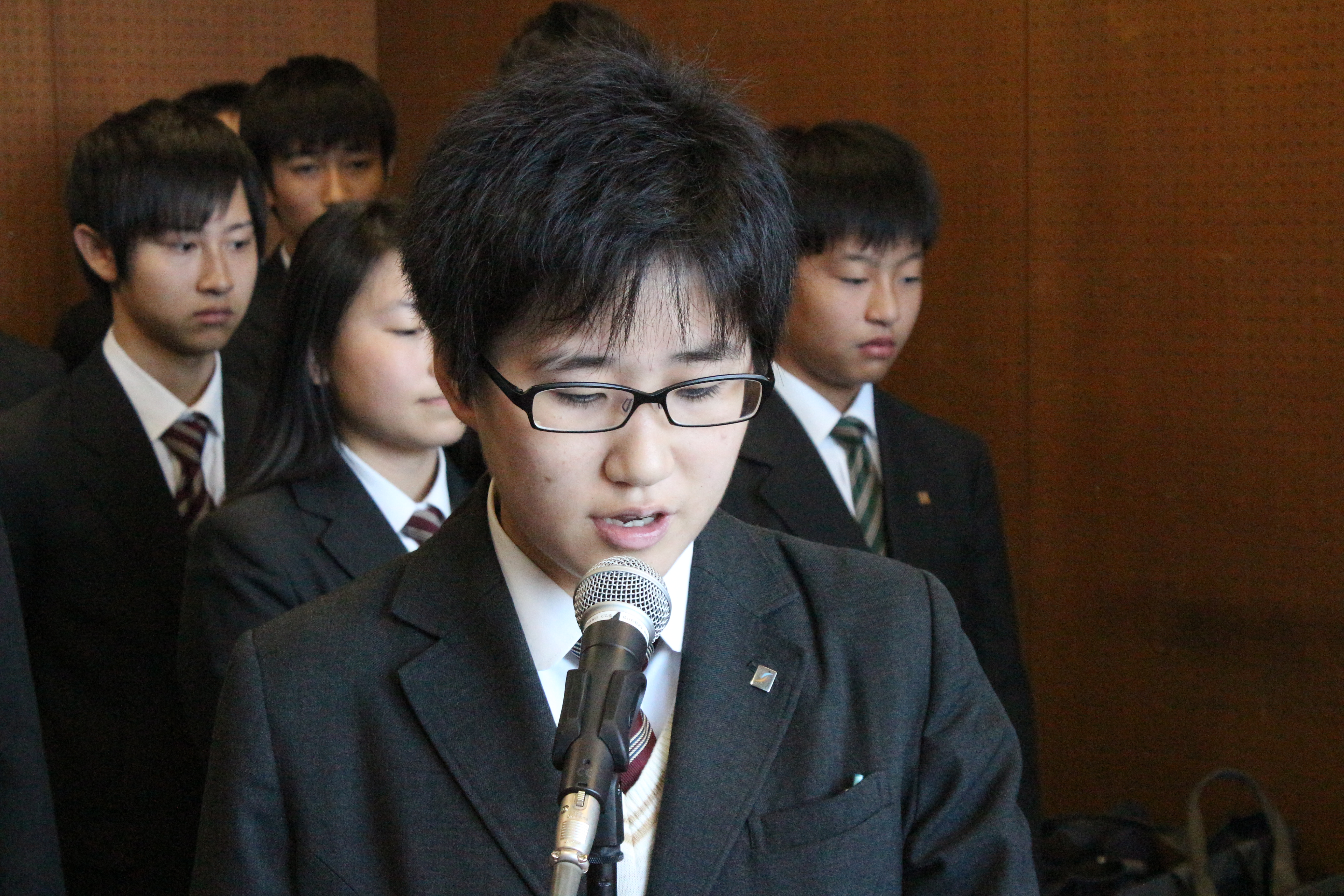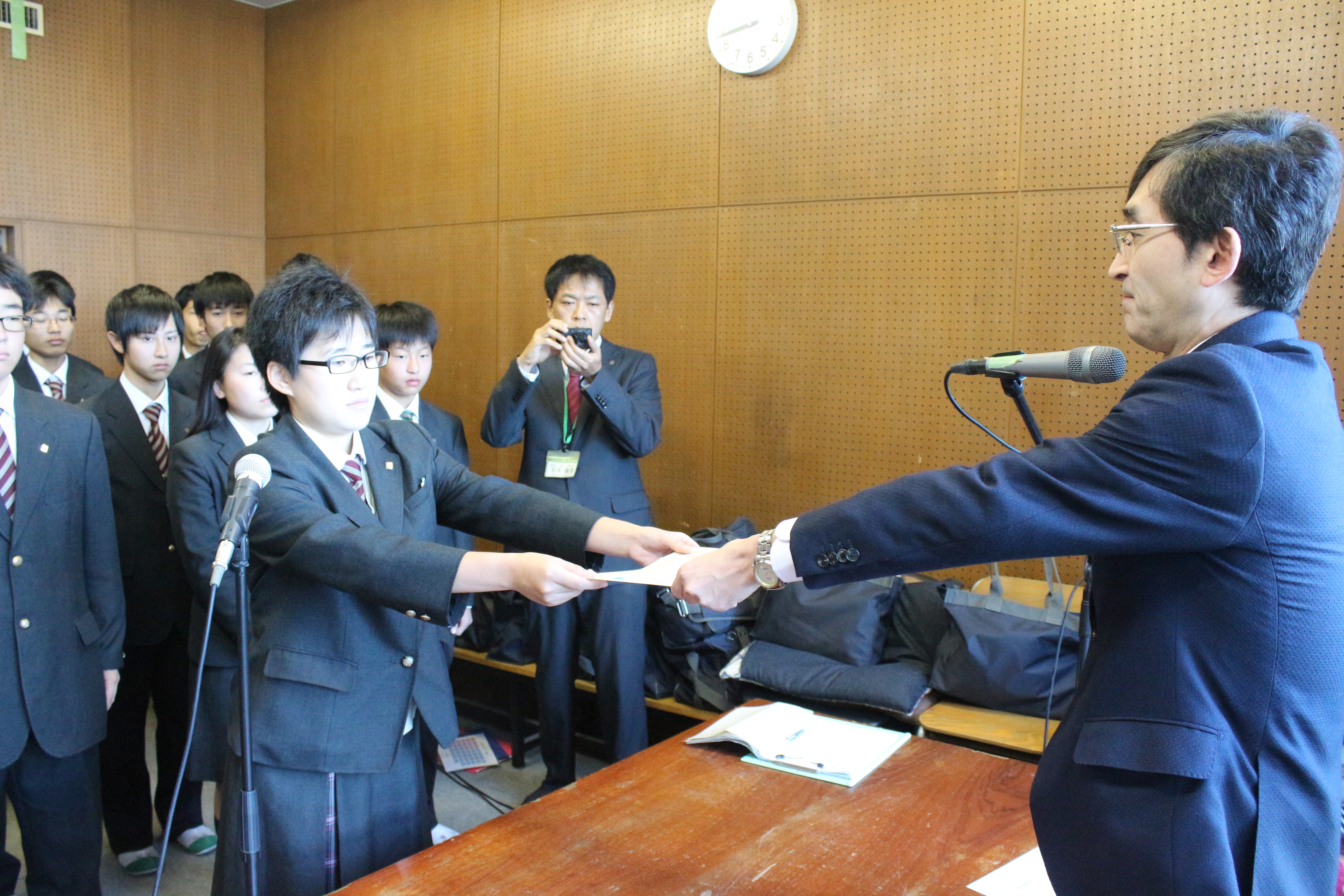 本日、平成28年度生徒会本部役員の任命式が行われました。新しく生徒会会長となった上野萌音さん(2年11組)は、「生徒会長としての気持ちも新たに、誠心誠意尽力してまいります。」と現在の意気込みを述べました。新しく発足した生徒会本部役員の皆さんが、今後ますます本校の活動を活性化してくれるものと期待しています。