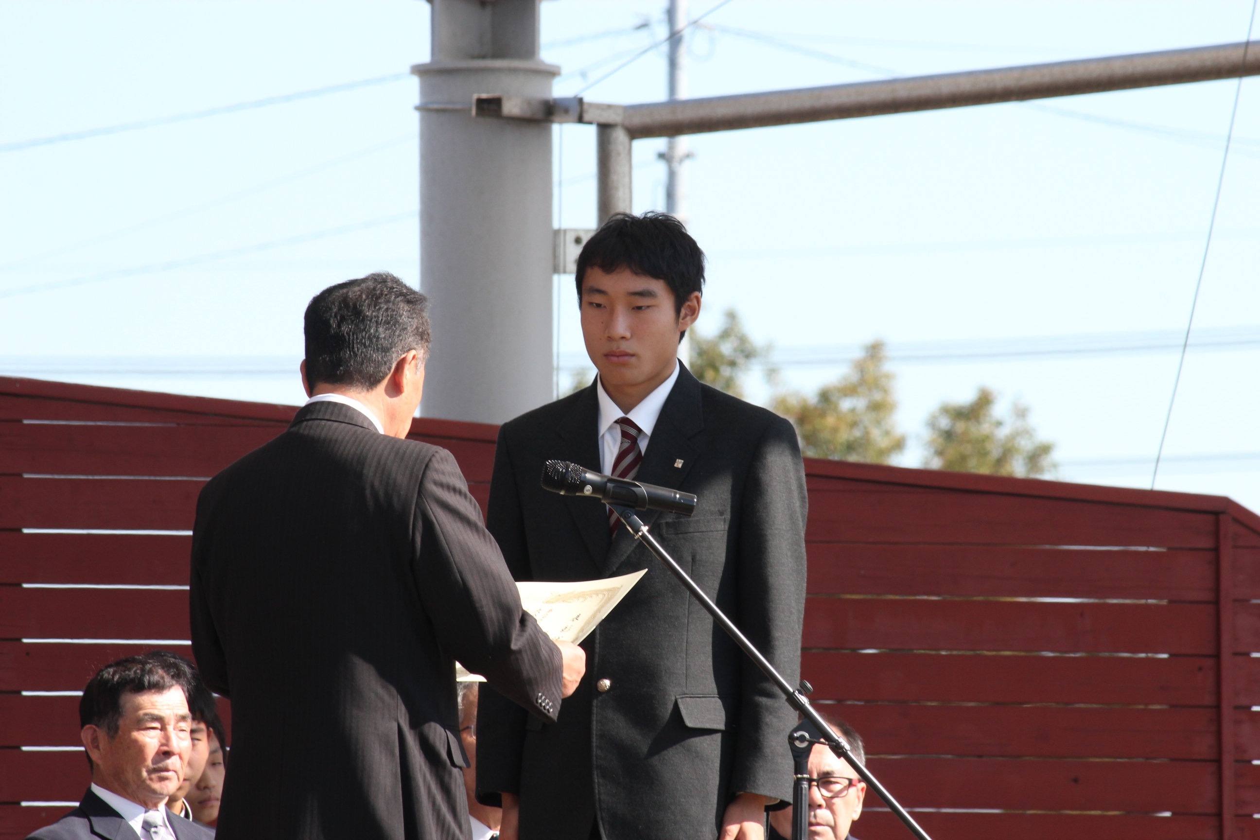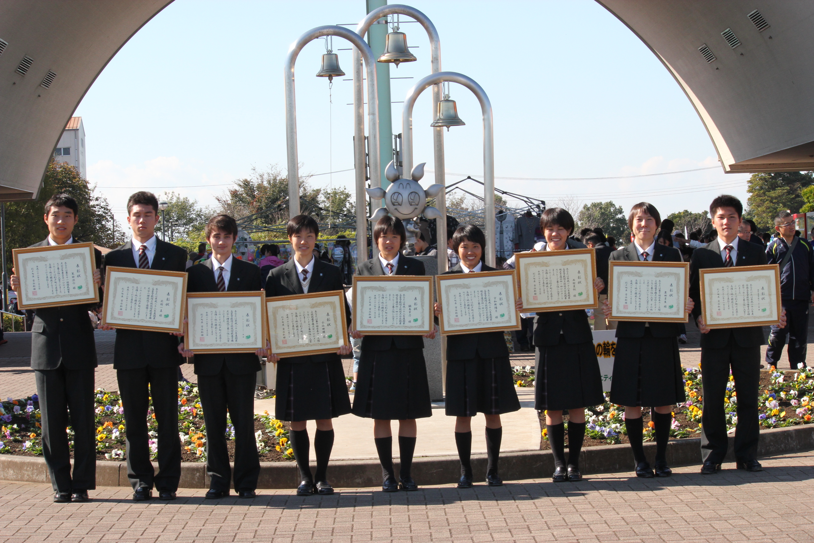 11月3日(月)、杉戸町のスポーツ・文化功労者に対する「表彰式典」がアグリパークゆめすぎと屋外ステージで行われ、本校からは男子サッカー部、男子陸上競技部、女子陸上部競技部の選手が出席し、古谷松雄 杉戸町町長から表彰を受けました。