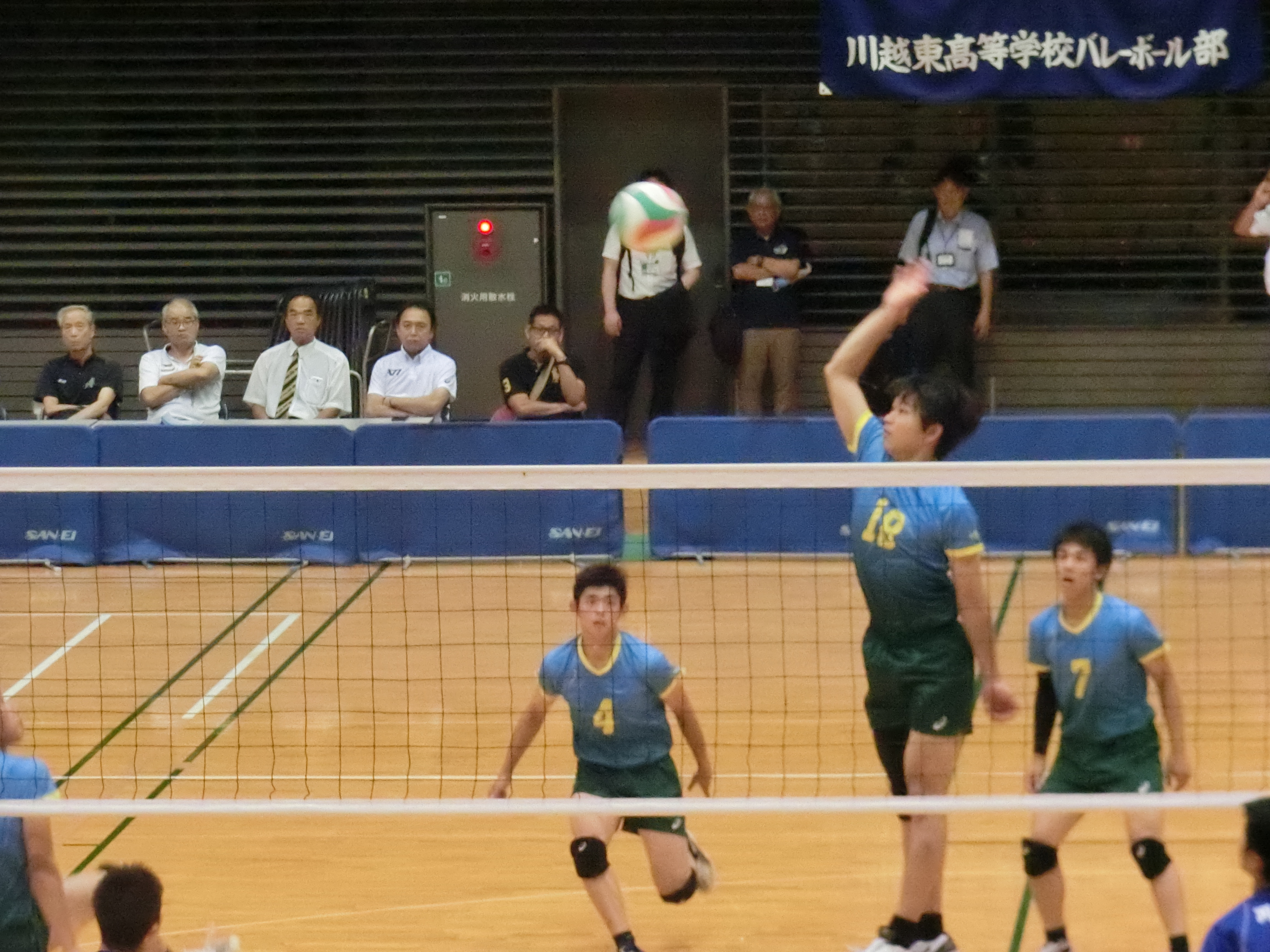 6月24日に所沢市民体育館で行われた決勝リーグにて、初のインターハイ出場をかけた戦いに臨みました。1試合目は、川越東高校に2-0で勝利するものの、2試合目に春日部共栄高校にフルセットの末1-2で敗れ、3試合目の埼玉栄高校にも0-2で敗れてしまい、1勝2敗で3位となりインターハイ出場を逃してしまいました。