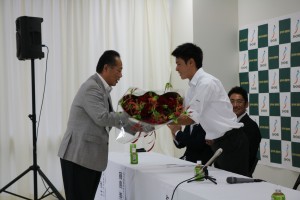 本日、来季からJ1大宮アルディージャへの入団が内定している佐相壱明君の入団記者会見が行われました。多くの報道関係者の方々、杉戸町町長 古谷 松雄 様にもご来校頂いた中で、大宮アルディージャのユニフォームに袖を通しました。プロになる上での覚悟、意志、意気込みを力強く語ってくれました。