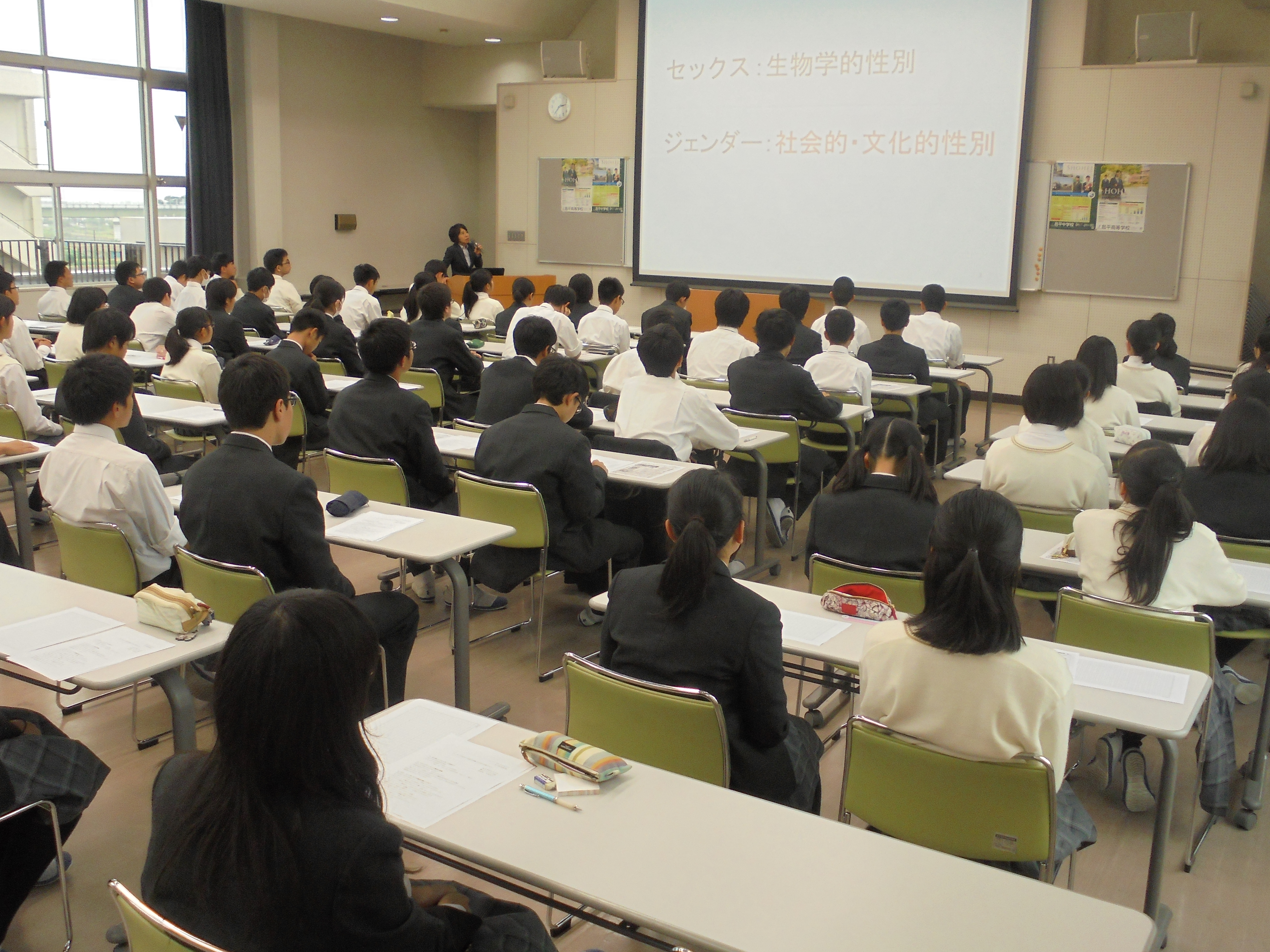 「ジェンダーとは何か?」、「なぜ、ジェンダーからの解放は難しいのか?」、「ジェンダー平等の社会に向かって」などのお話をしていただきました。これまでのジェンダー構造によって規定された社会を平等な社会に変えていくことが、個々の能力・個性を発揮できるようにするために必要であるといった興味深い内容でした。