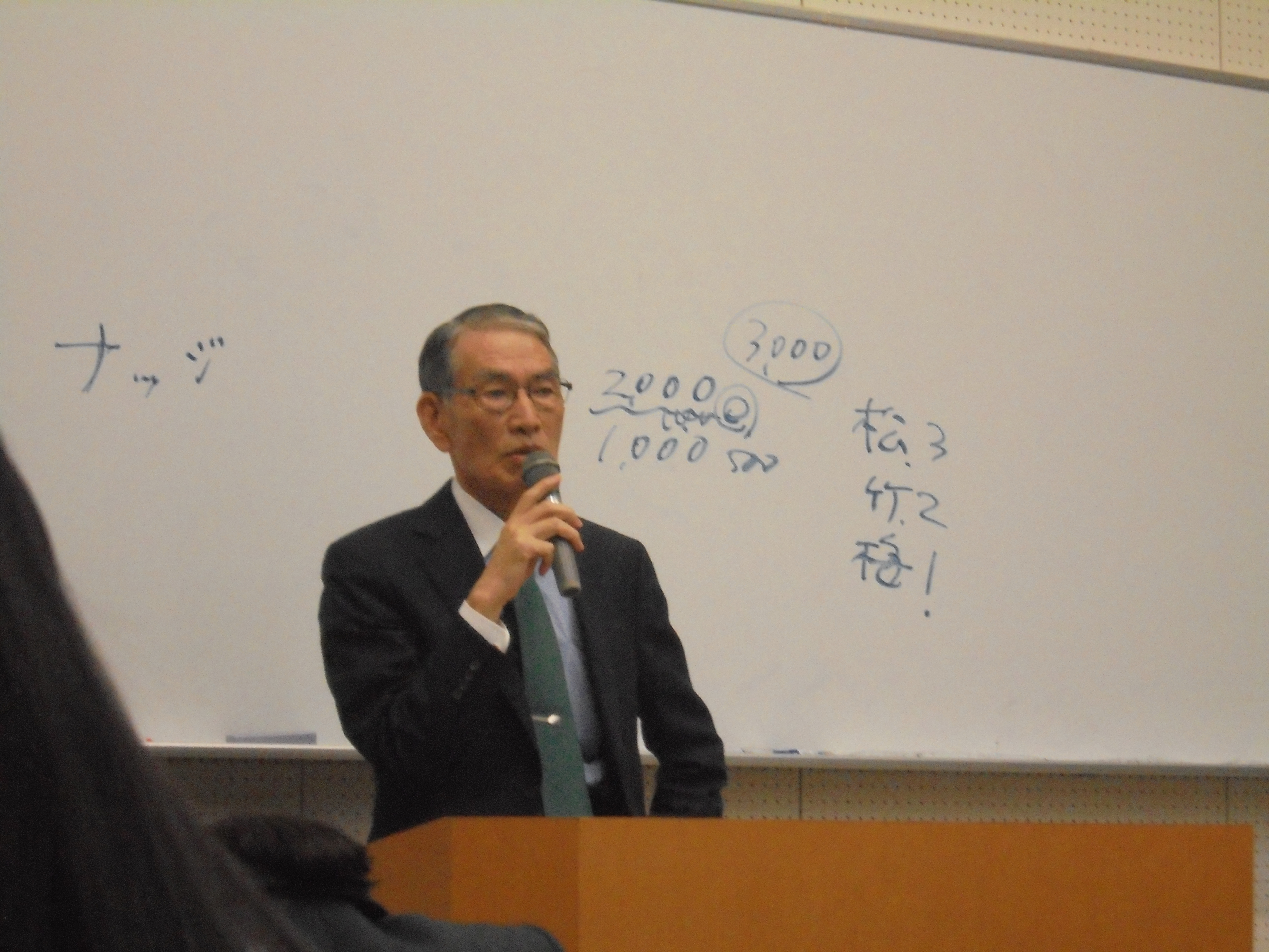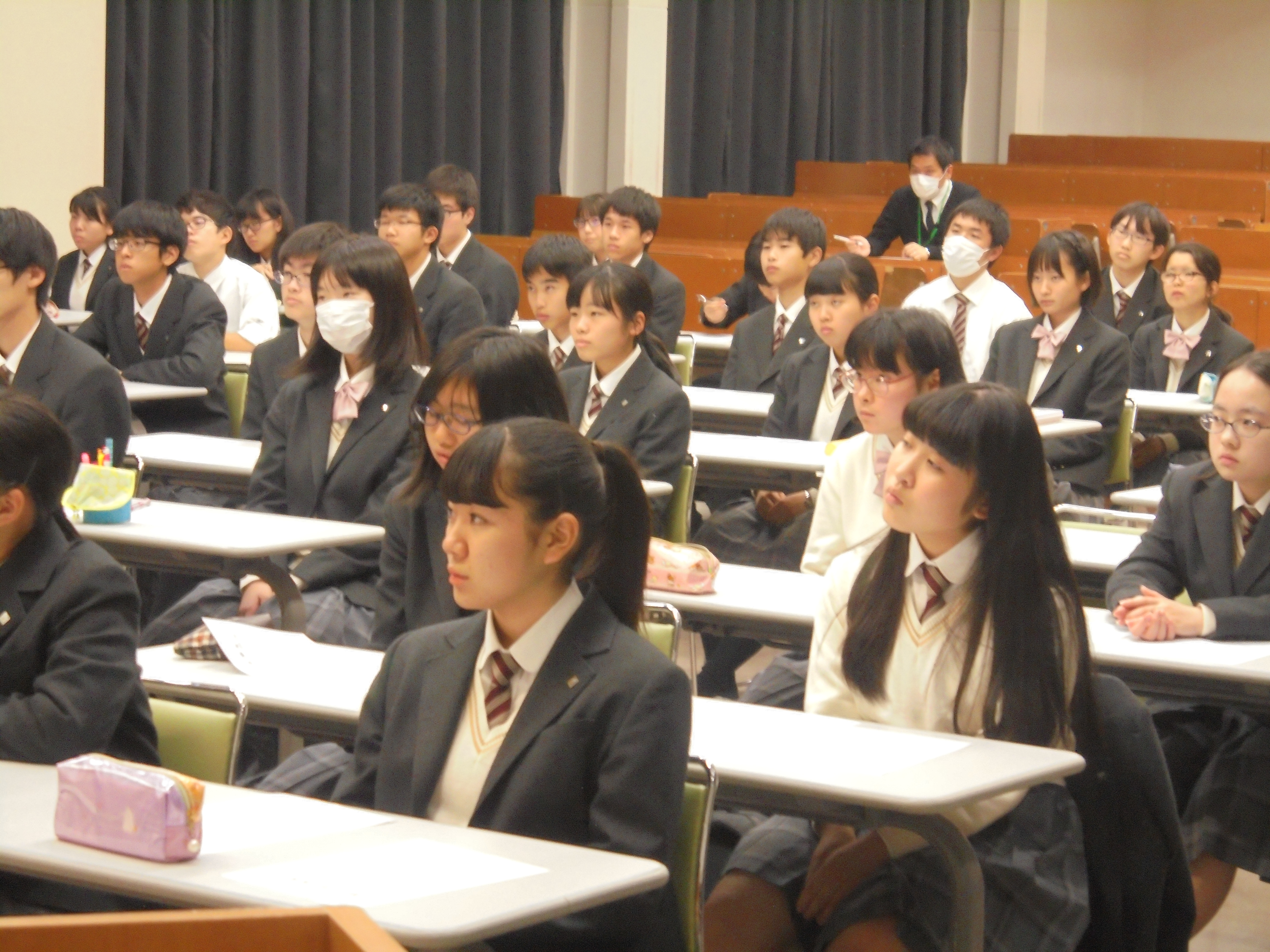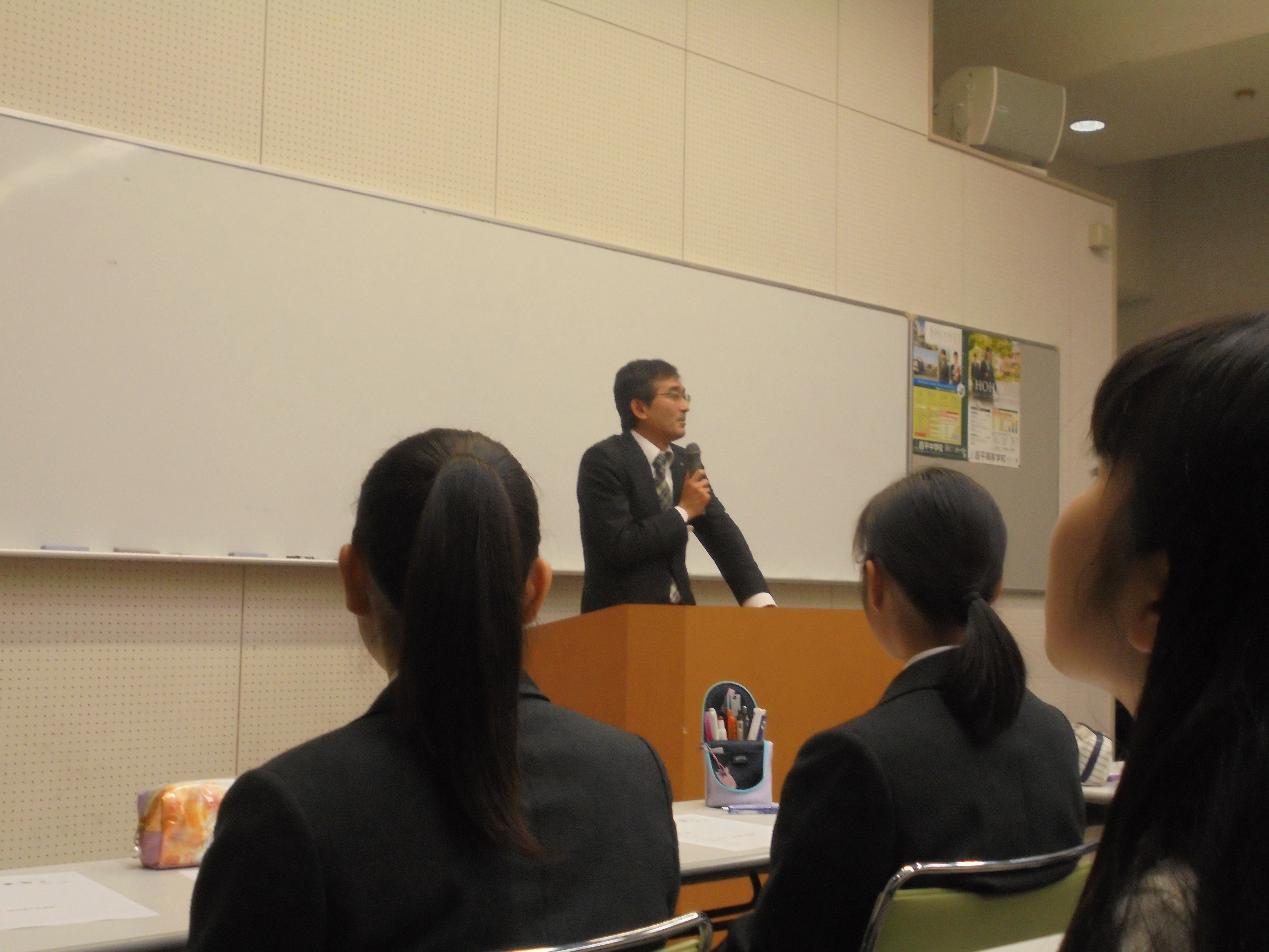 本校の福田正勝理事長先生より「銀行から見た 事・物 他」という題目で講義を行っていただきました。金融関係でご勤務されていた経験から、「銀行員の一日」、「お金・信用・金融・経済」、「これからの日本・ユーロ・世界」など、とてもわかりやすく熱心にお話しをしてただきました。生徒たちはしっかりと話を聞き、経済についての視野をひろげるきっかけとなりました。