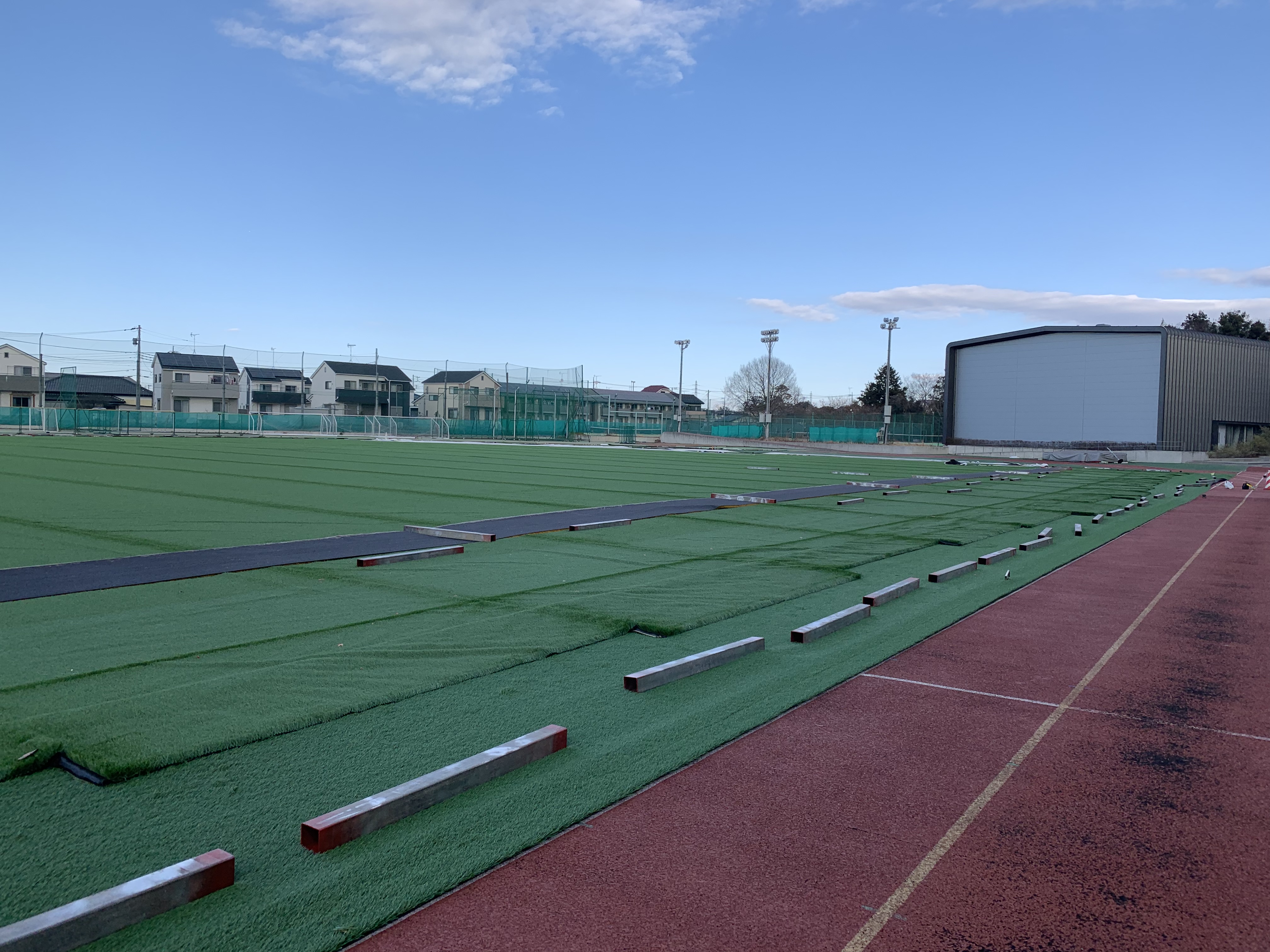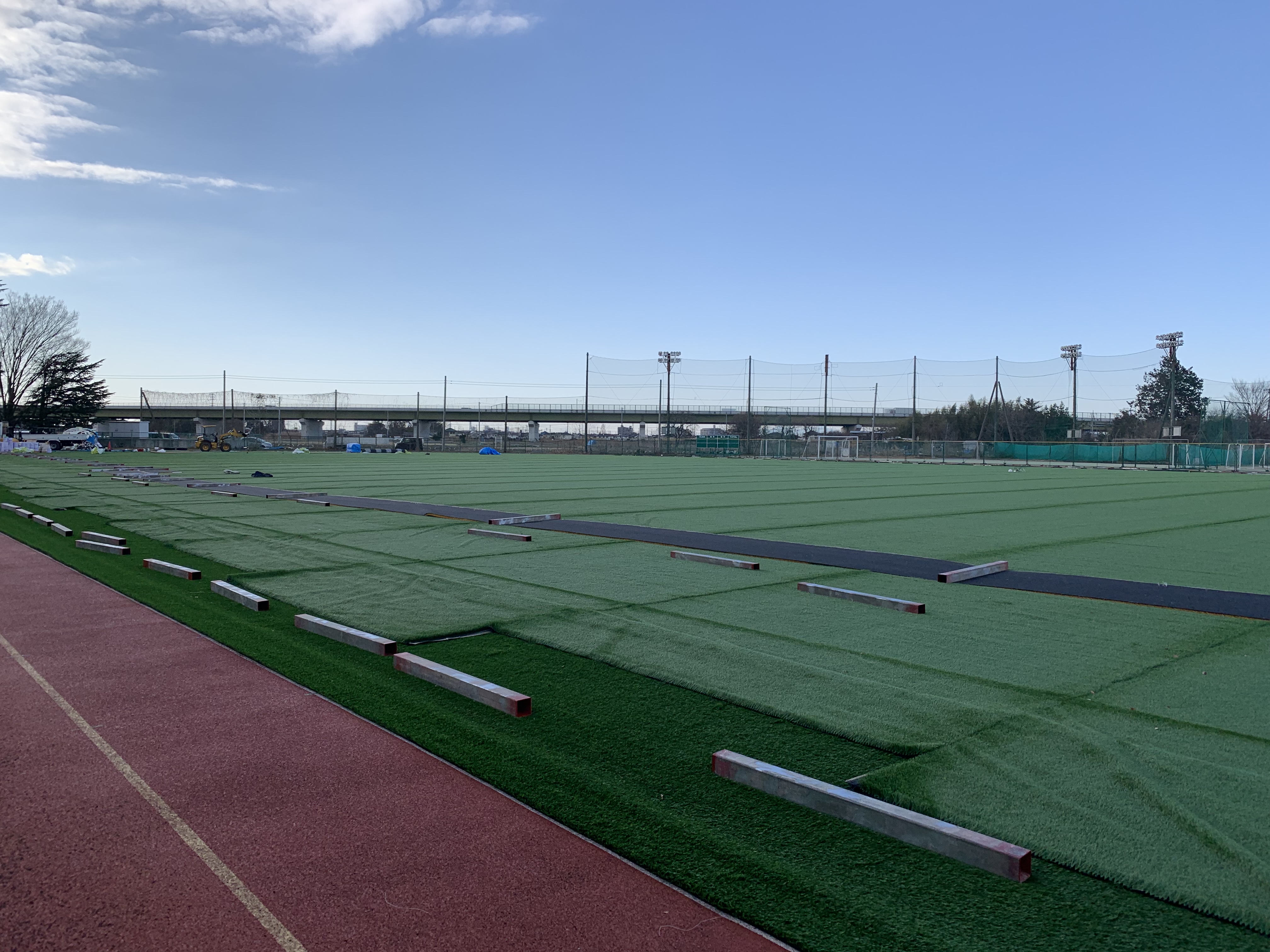 人工芝グラウンド完成間近です。