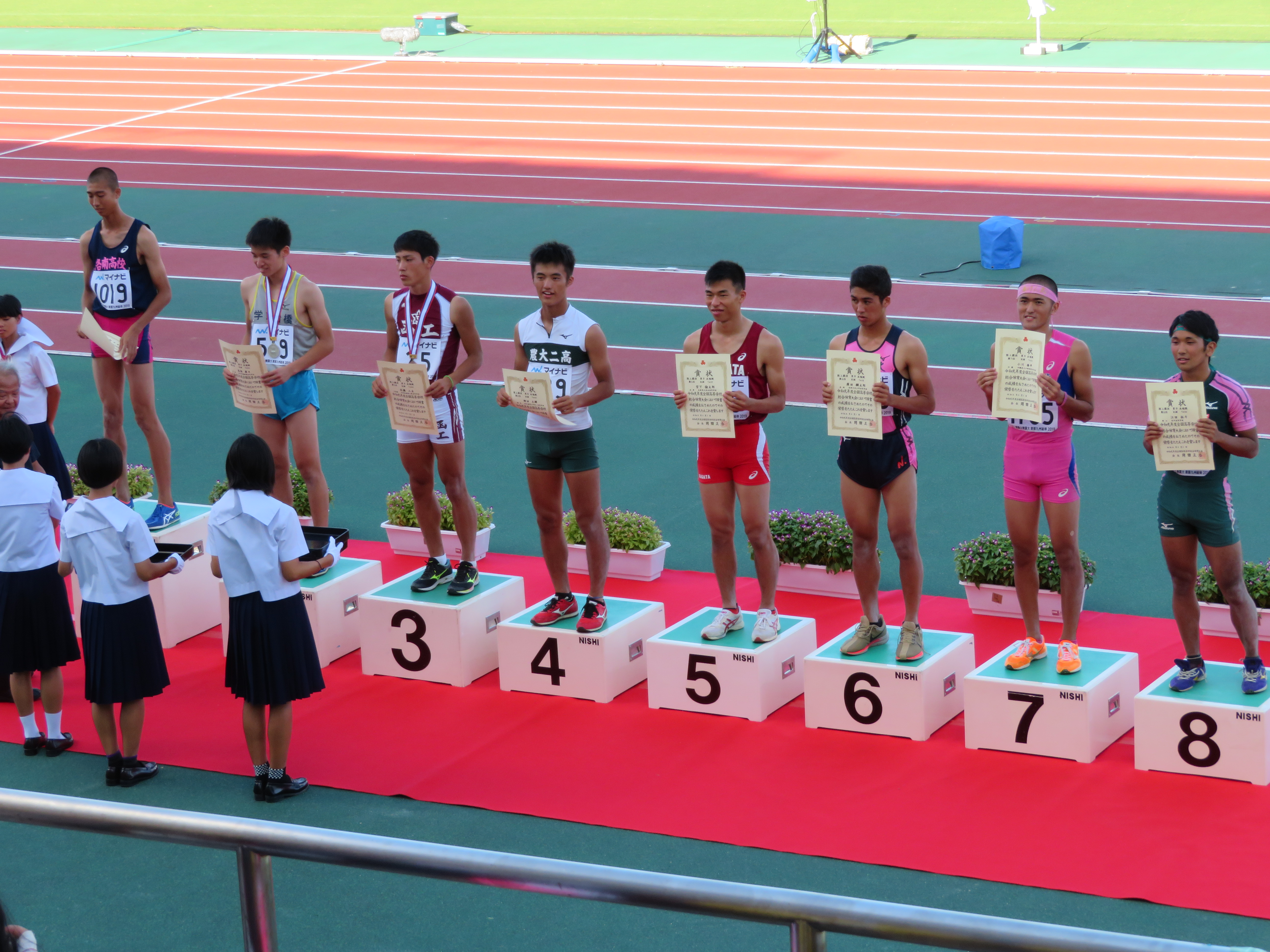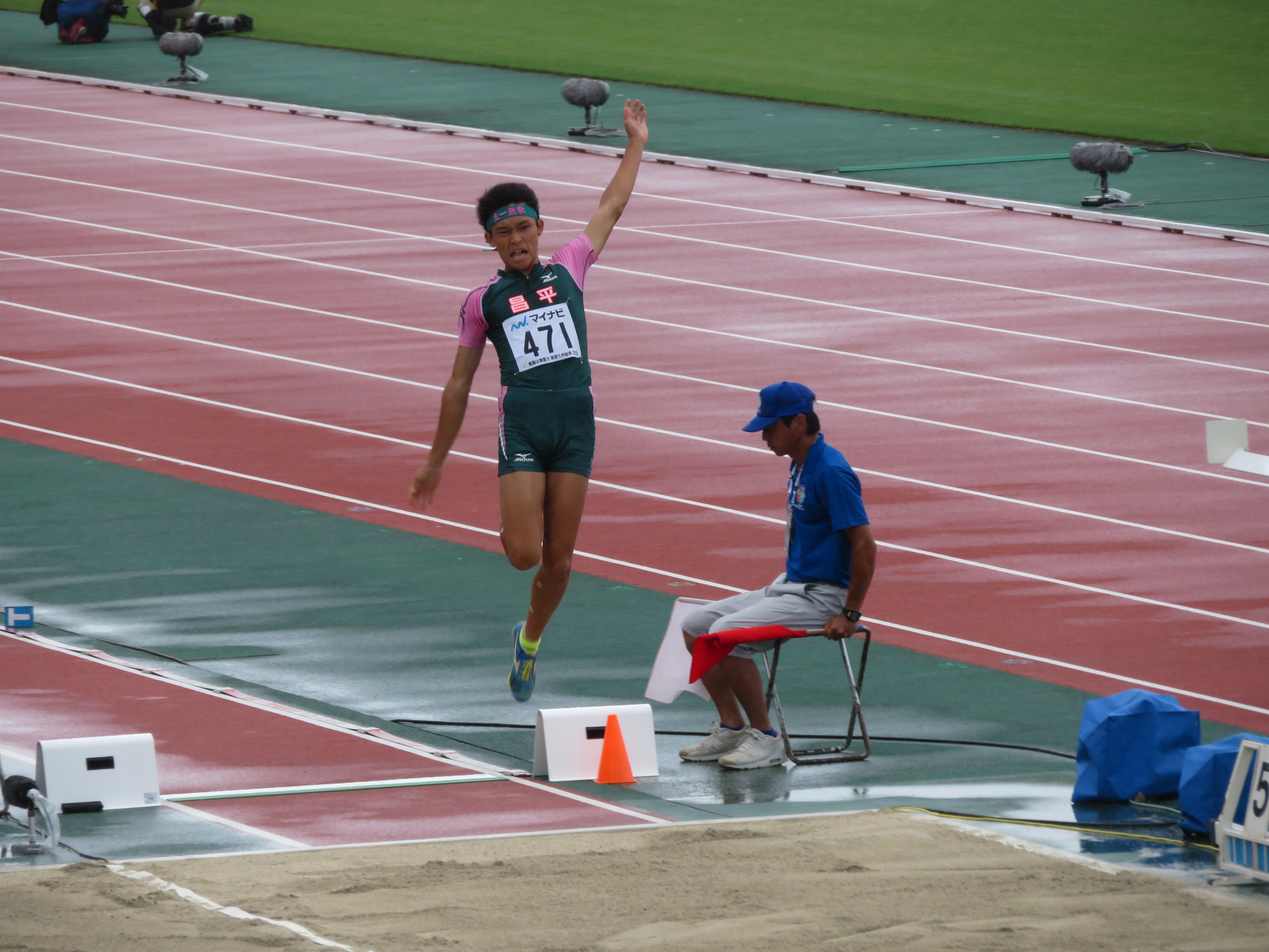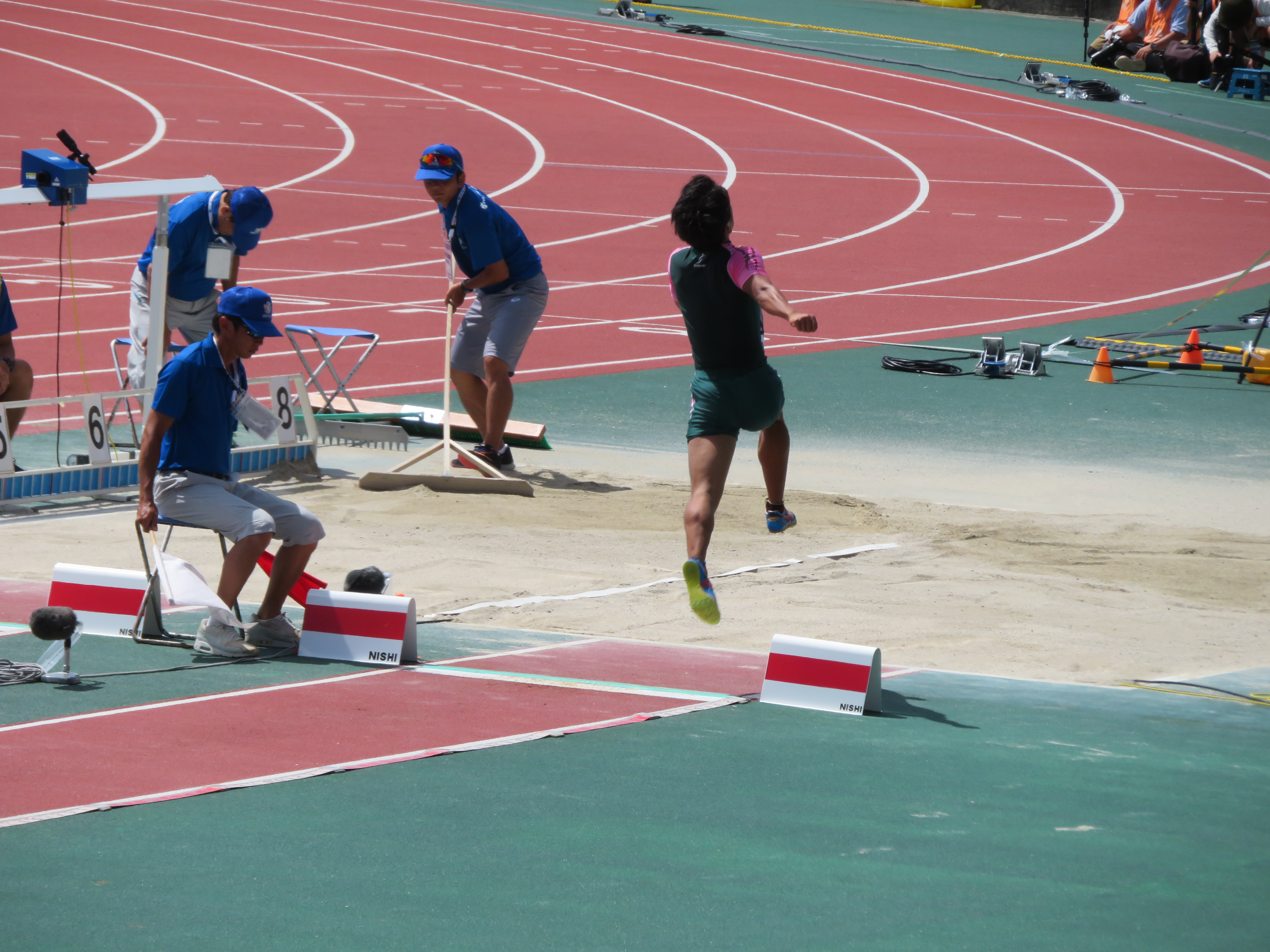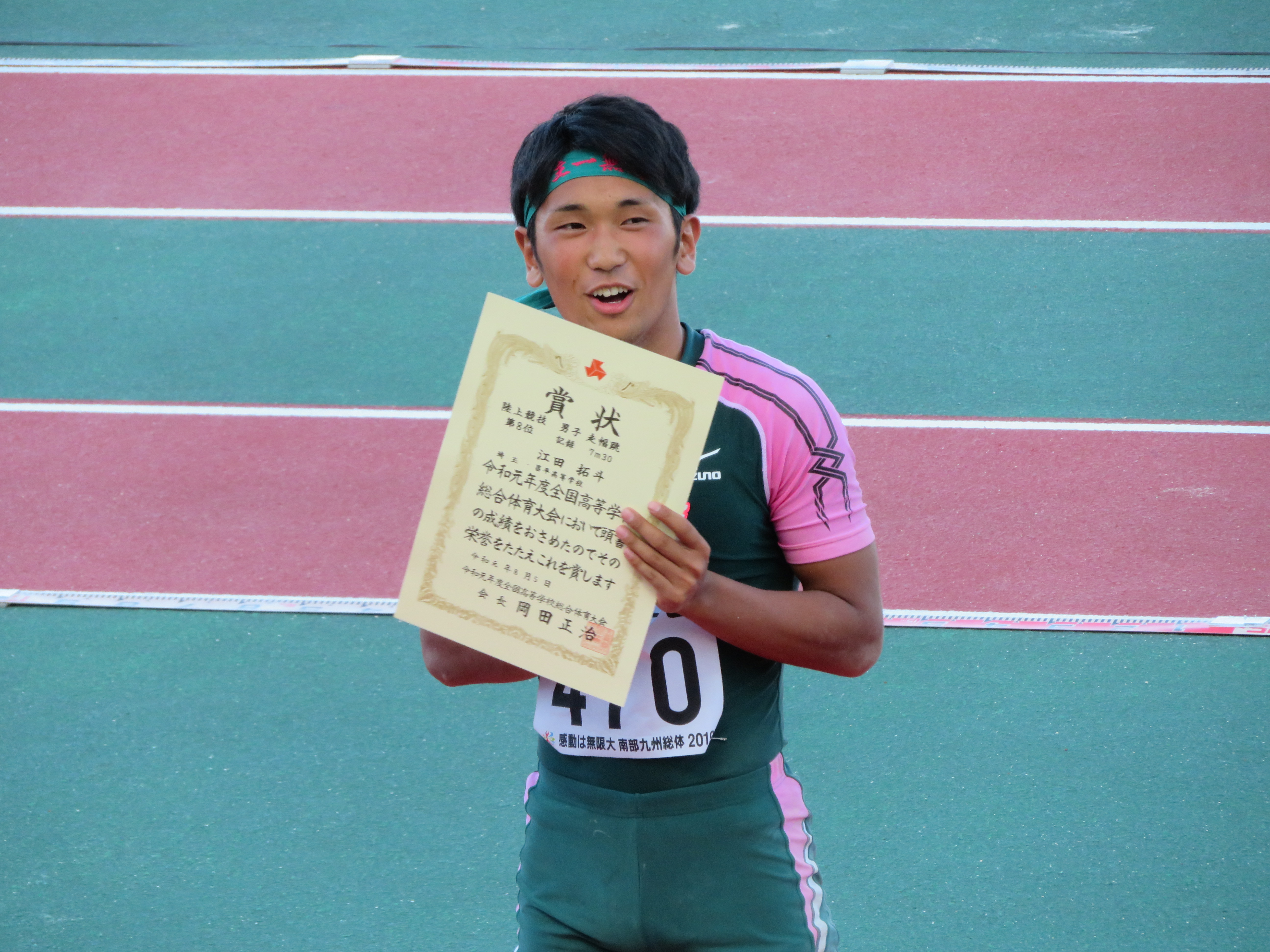 8月4日より沖縄タピック県総ひやごんスタジアムで行われた「全国高等学校総合体育大会」(インターハイ)に男子陸上部から3名の選手が出場し、男子走り幅跳びに出場した江田 拓斗(3)[加須北川辺中出身]が自己ベスト記録11Cmオーバーの7m30Cmを跳び8位入賞することが出来ました。