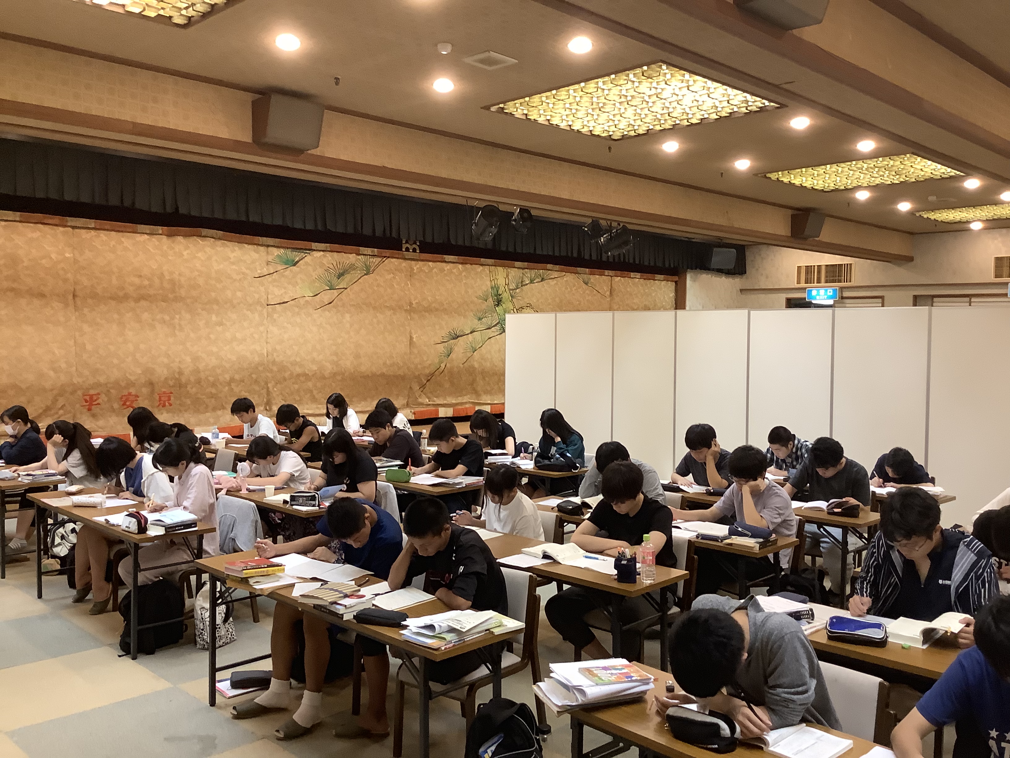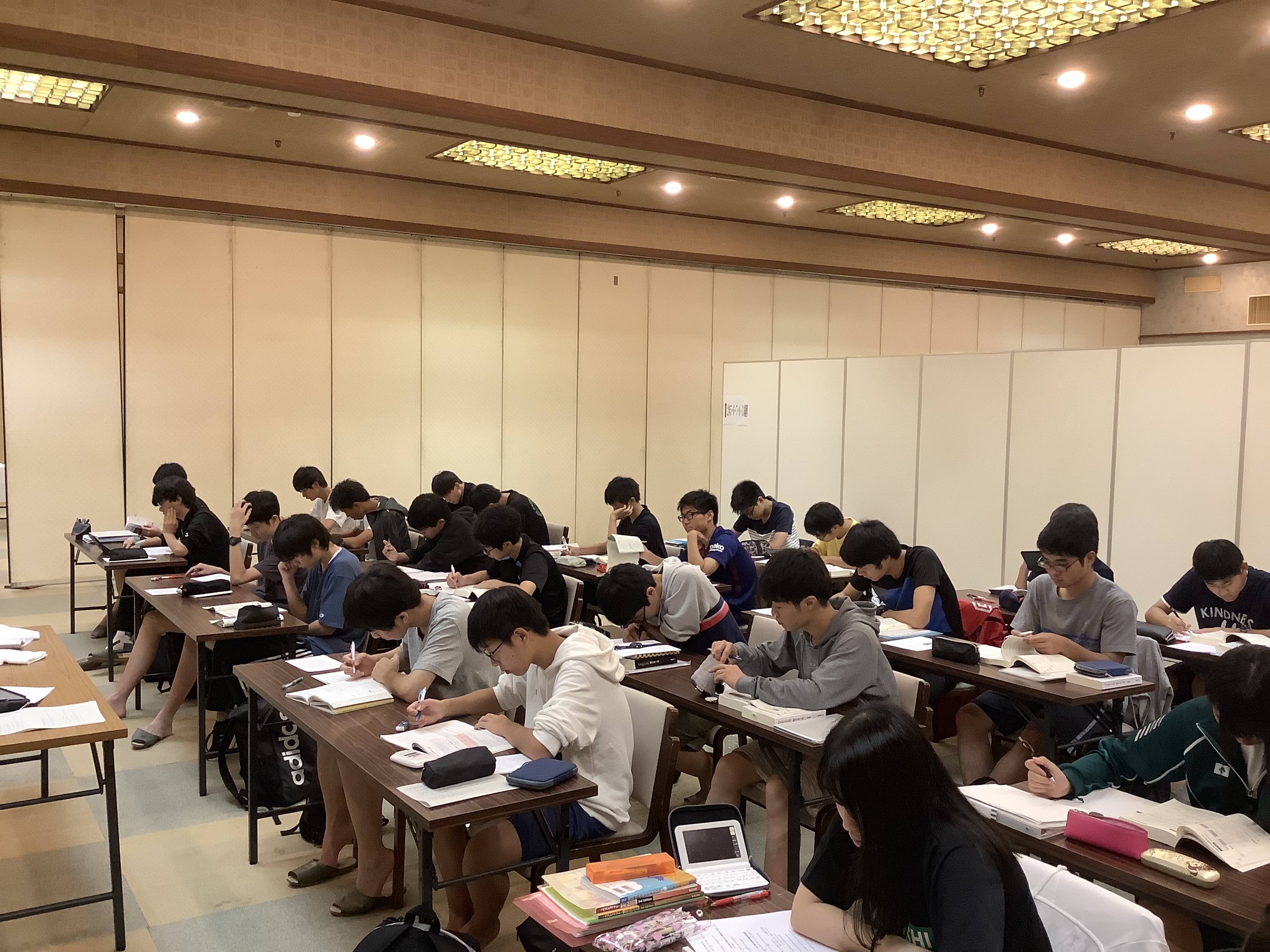 お昼から本校の中学3年生が合流しました。夜は高校生と一緒に自習をして高校生の学習する雰囲気を体験しました。