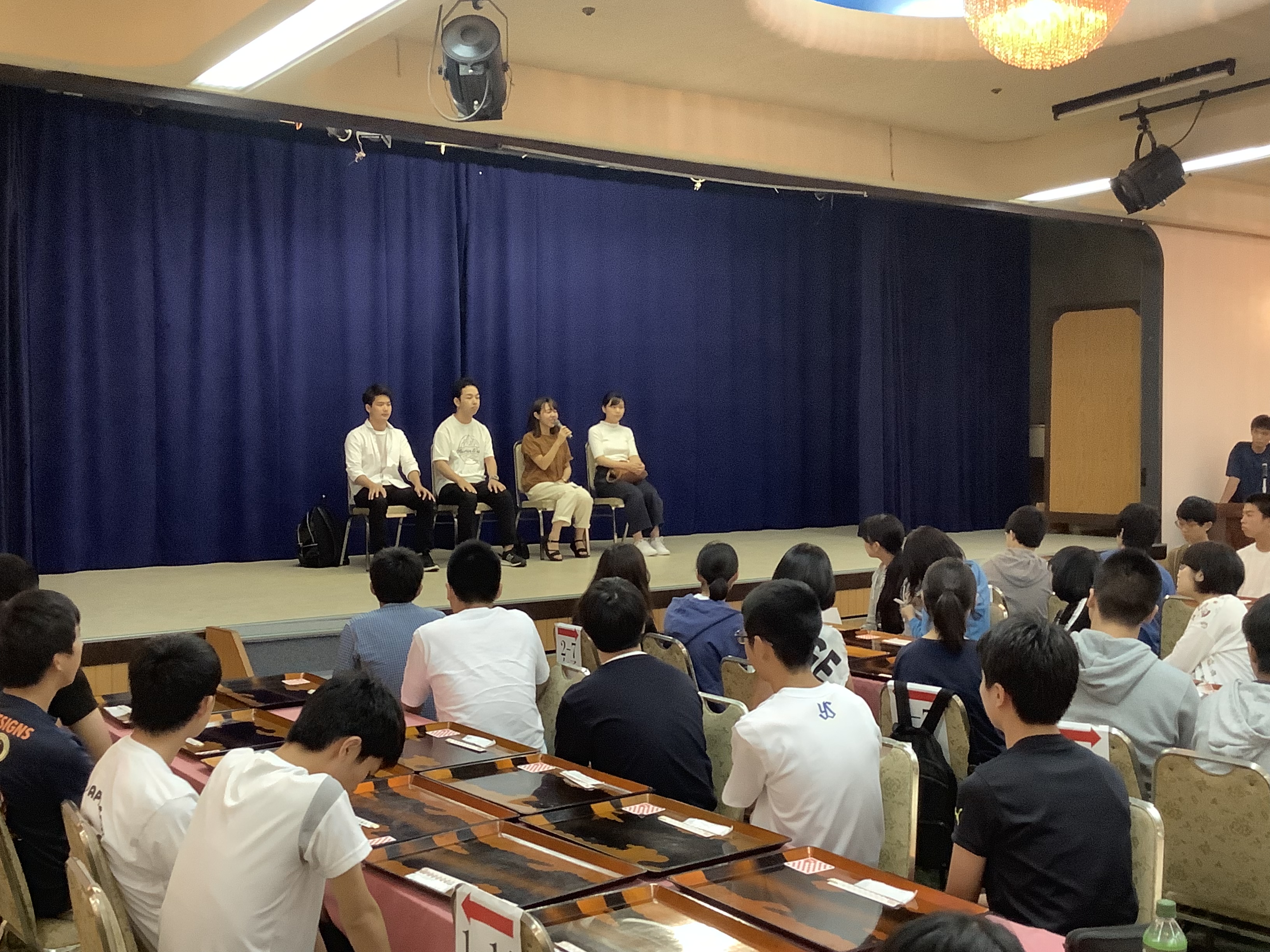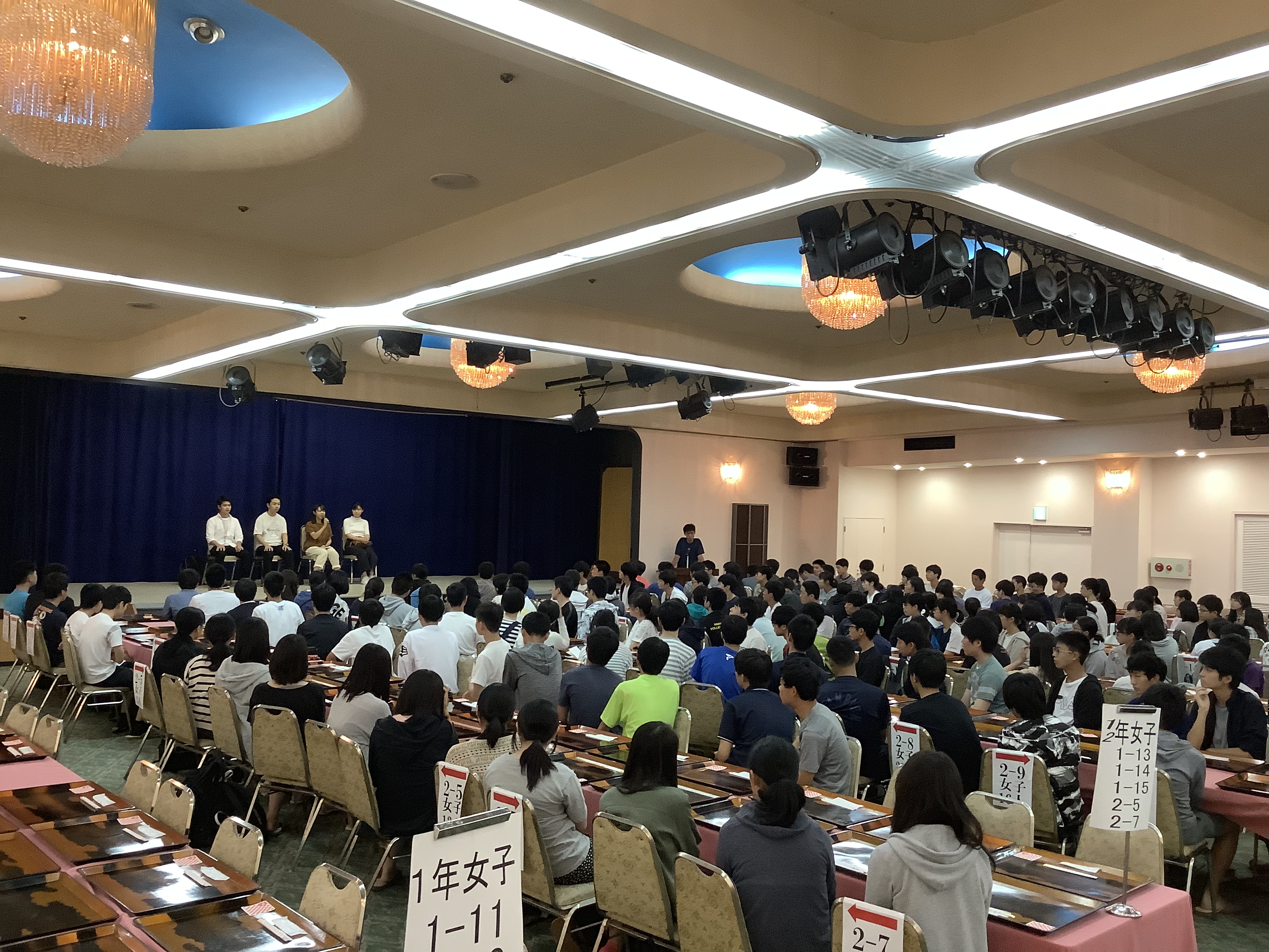 夜は、本校卒業生の講話があり、高校時代の勉強方法や、受験勉強の苦労などを皆熱心に聞いていました。卒業生の話を聞き、生徒の学習意慾も高まりました。
