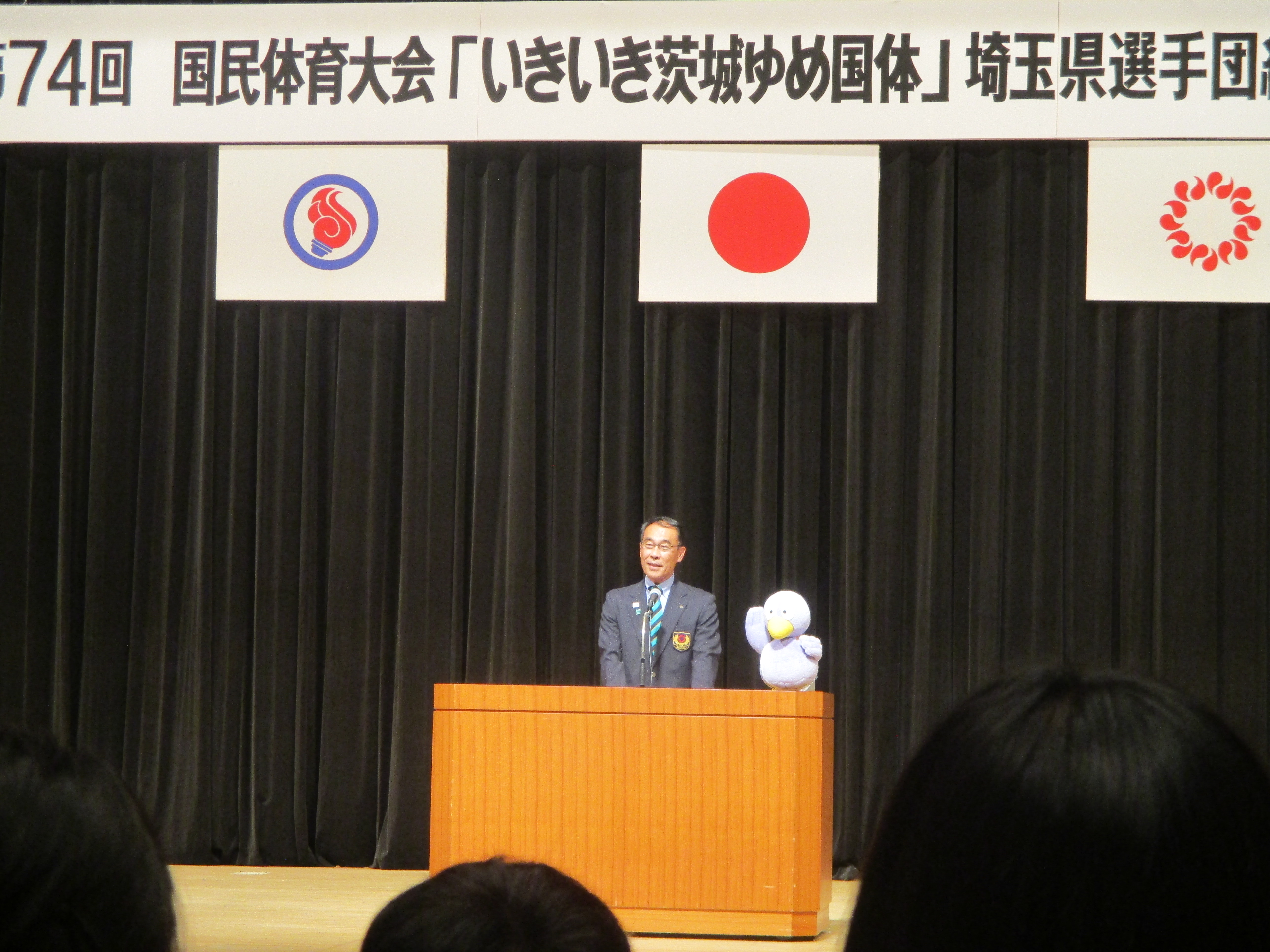 第74回国民体育大会「いきいき茨城ゆめ国体」の結団式・壮行会が、さいたま市の埼玉会館で行われ、出席した監督、選手一同が活躍を誓いました。