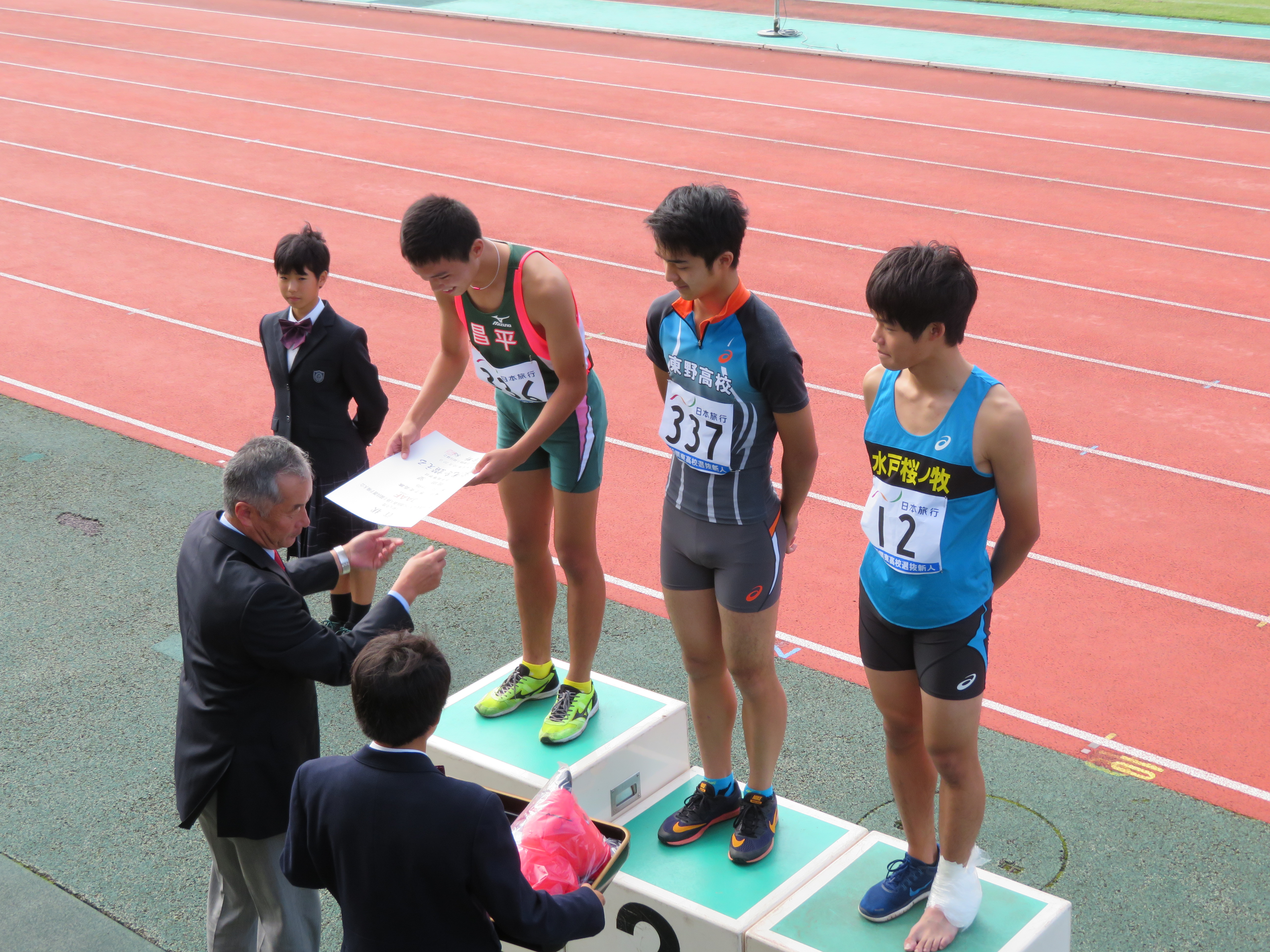 10月19日・20日の2日間、千葉県総合スポーツセンター東総運動公園陸上競技場で行われた関東高等学校選抜新人陸上競技大会に3名の選手が出場しました。走高跳に出場した 岡田 望(三郷早稲田中出身)が1m96を一回目に跳び優勝、110mHに出場した 鈴木 玖琉(野田南部中出身)が8位入賞しました。400mHに出場した 門井 大夢(加須昭和中出身)は予選56秒74で走りましたが、決勝進出は出来ませんでした。