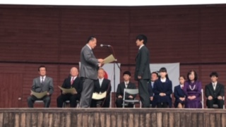 11月3日(日)、杉戸町のスポーツ・文化功労者に対する「表彰式典」がアグリパークゆめすぎと屋外ステージで行われ、本校からはラグビー部代表御代田先生、男子陸上競技部の江田君、金子君、金井君、女子陸上競技部の稲垣さんがスポーツ大賞を受賞し、古谷松雄 杉戸町町長から表彰を受けました。また、未成年者飲酒・喫煙防止キャンペーンに16年間参加している業績に対して感謝状が贈られ、新生徒会長の桜井君が受け取りました。