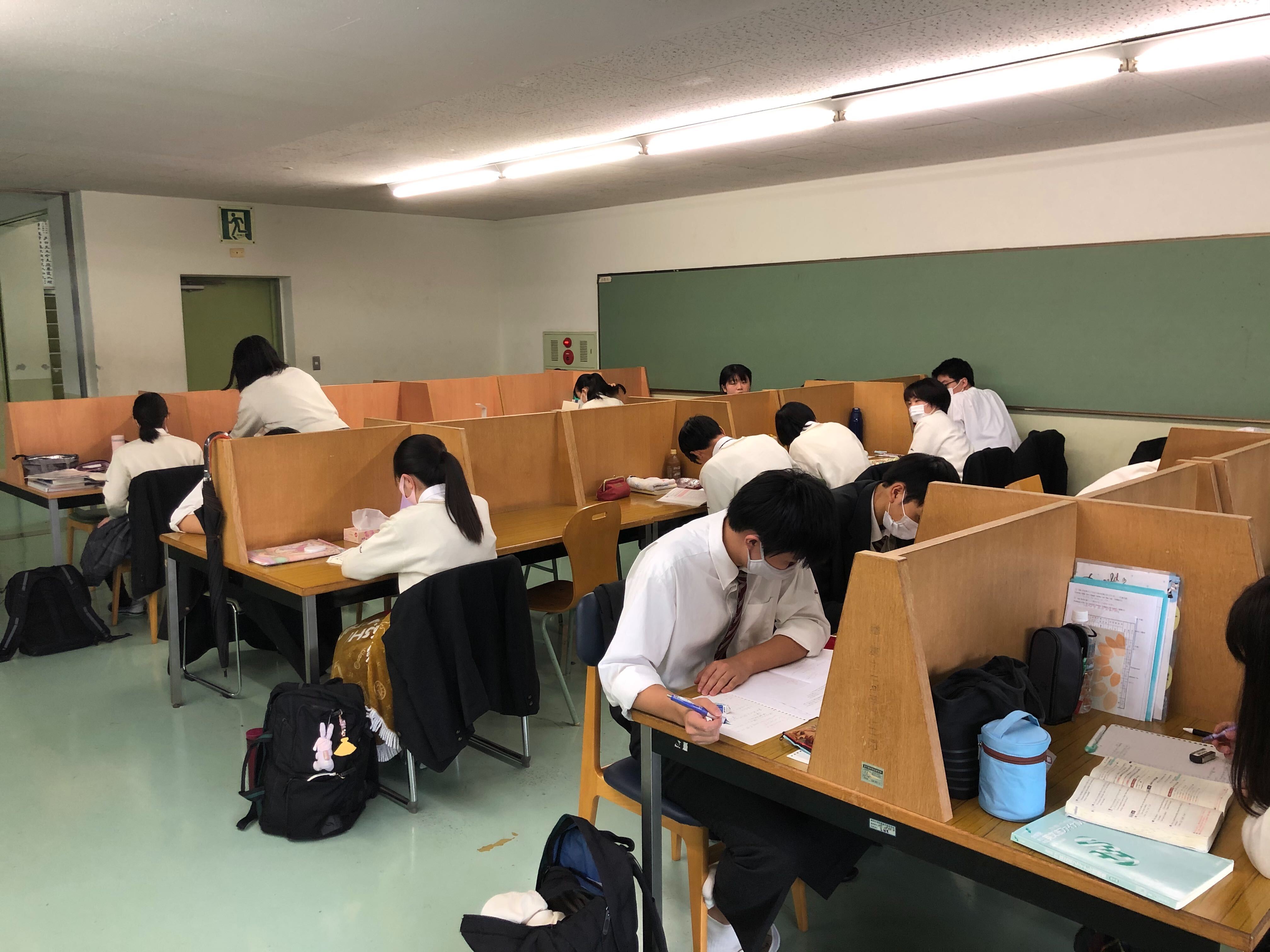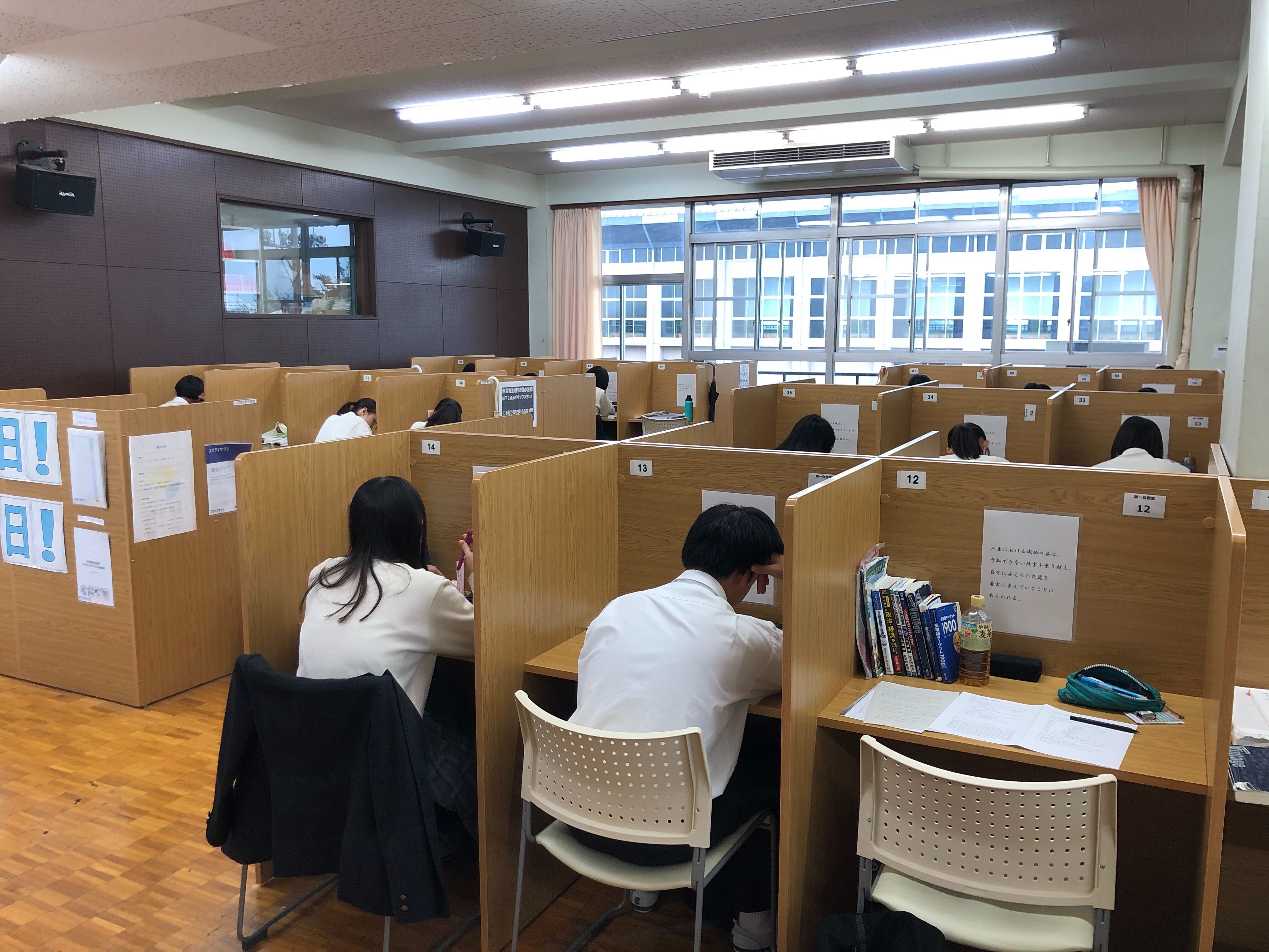 今日は中間考査3日目です。自習室や学習スペースで、今日もたくさんの生徒が勉強に励んでいます。あと1日頑張りましょう!