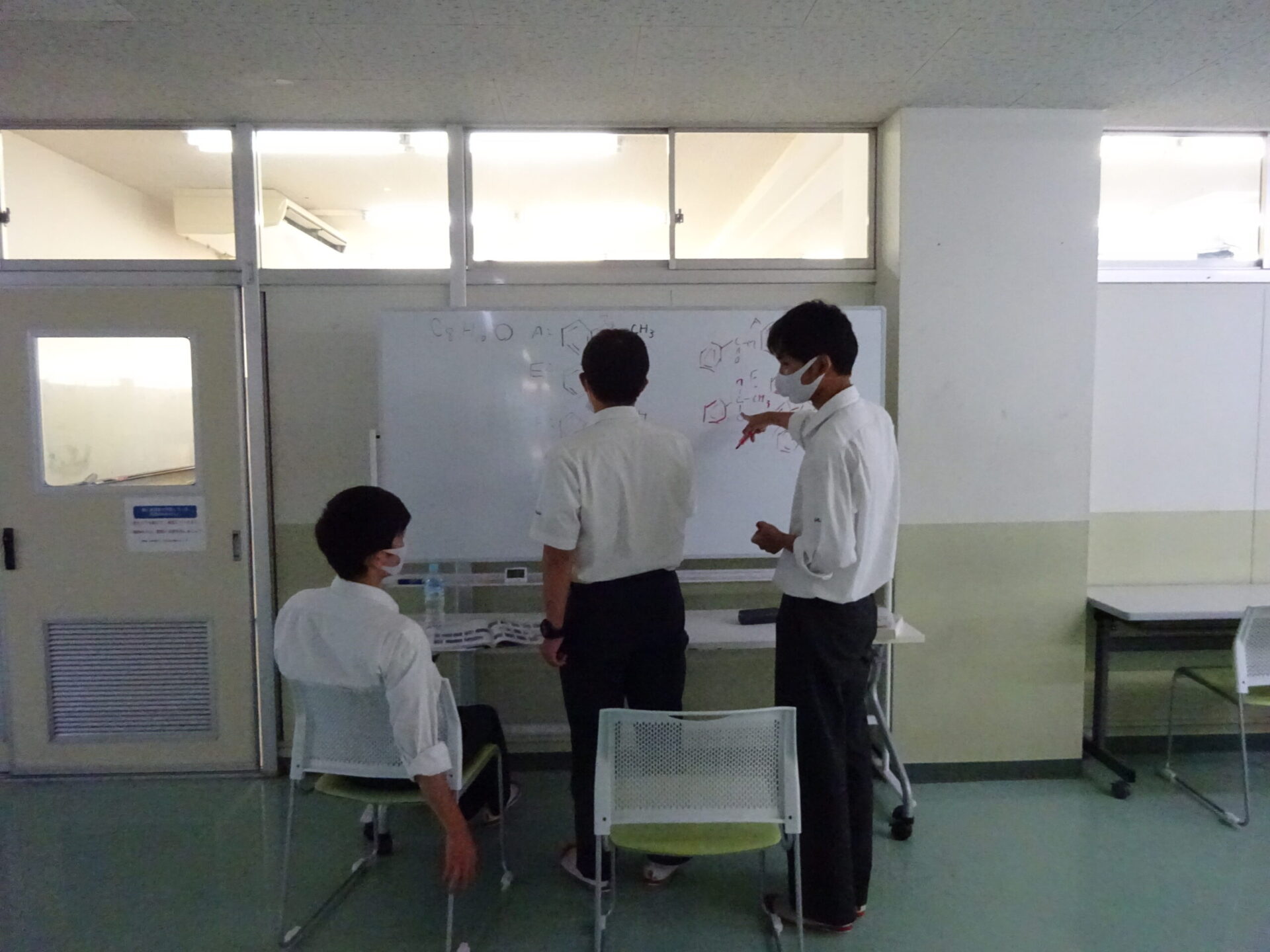 1学期がもうすぐ終わる土曜日ですが、昌平生は土曜日の午後も頑張ります。帰りのSHRが終わったすぐあとの自習室では行列。分からないところはすぐに質問。時には生徒同士の教え合いの光景も見られます。