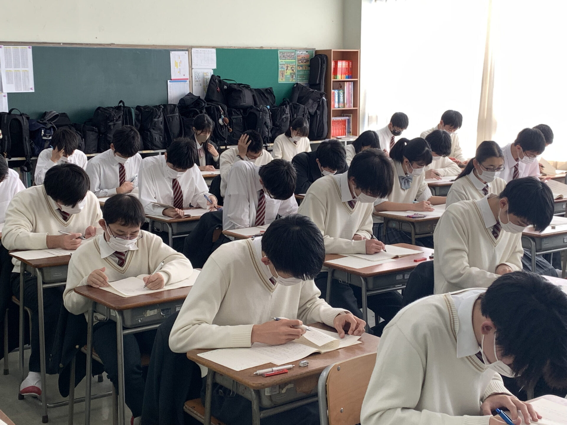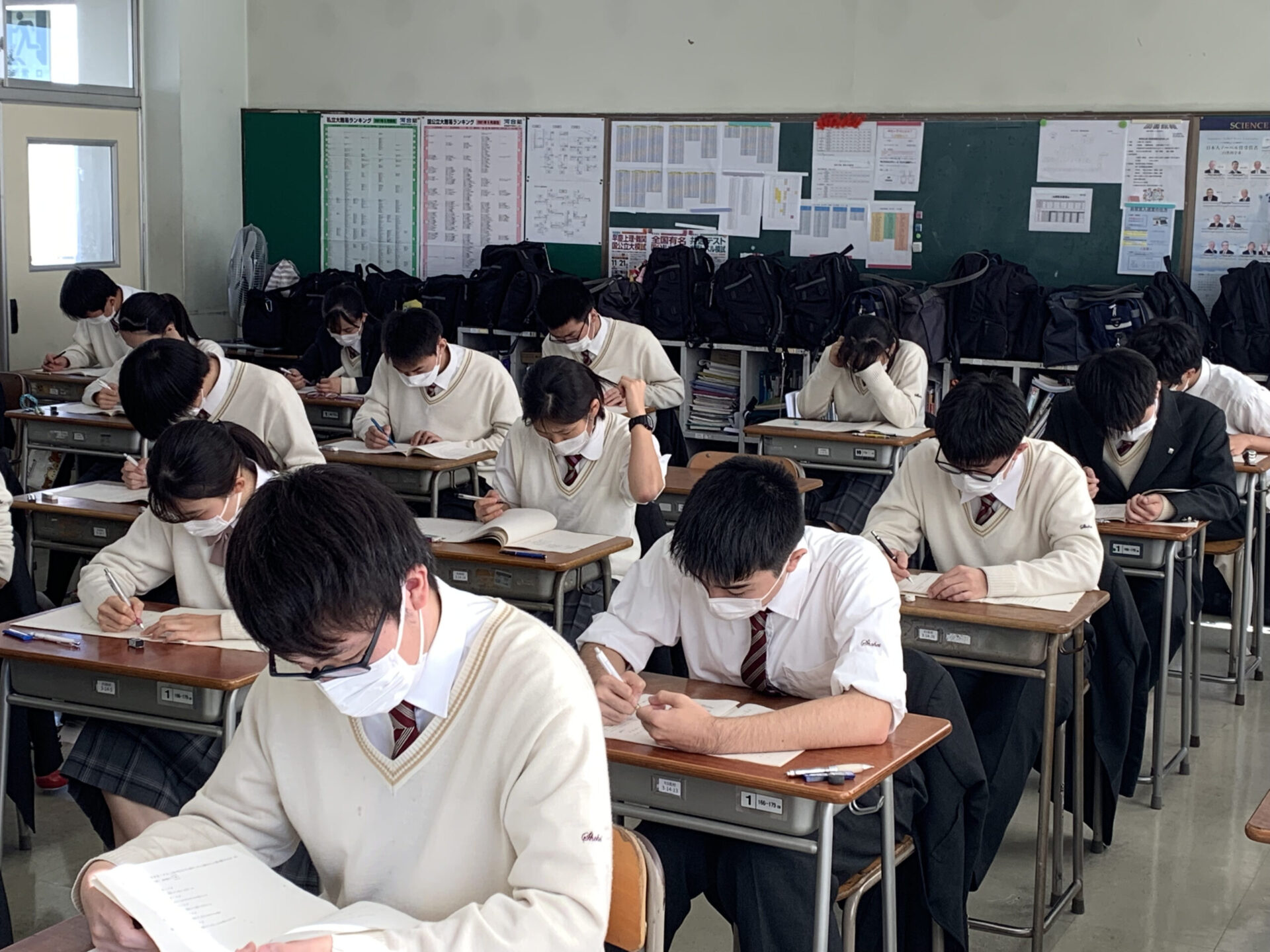 模擬試験の問題を集中して解いていました。今年も東京大学を初め、一橋大学や東京工業大学のような難関大学を受験します。