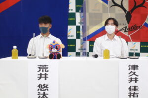 本日、2023シーズンよりJ1 FC東京に加入内定の荒井悠汰君、J1 鹿島アントラーズ加入内定の津久井佳祐君の2名合同での記者会見を行いました。