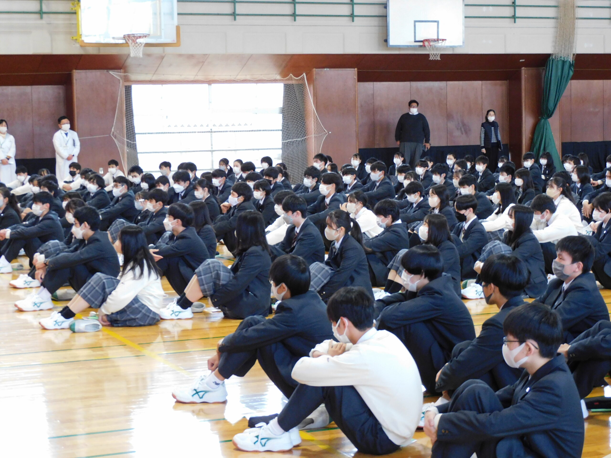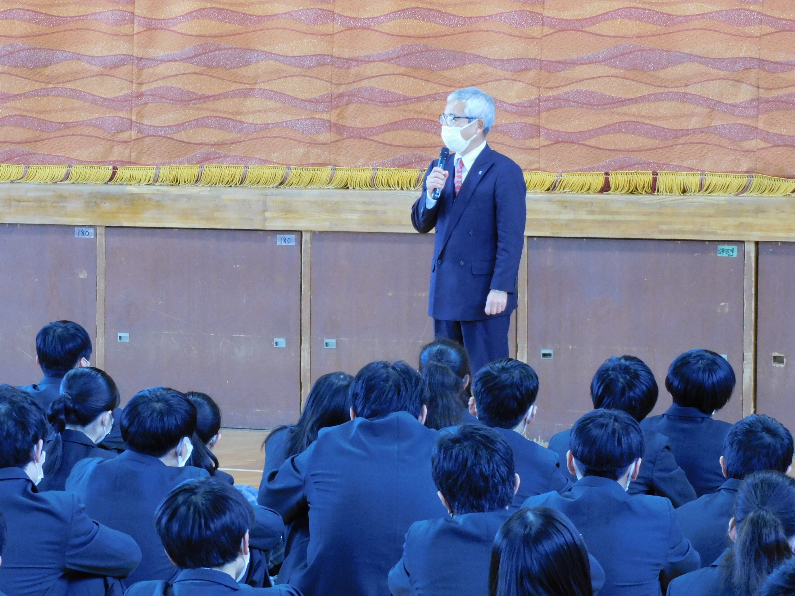 明日に迫った修学旅行に向け、学年集会が体育館で行われました。