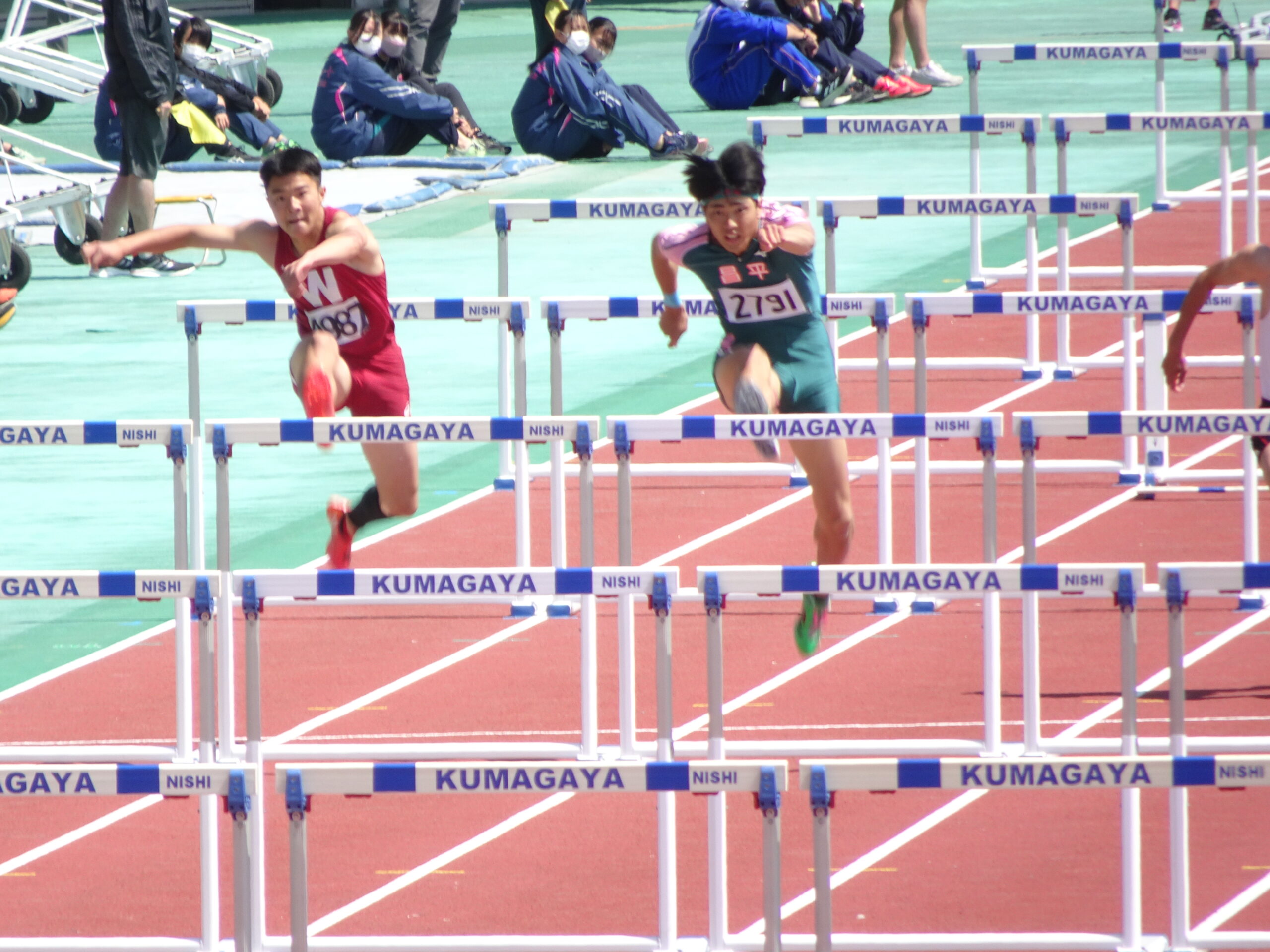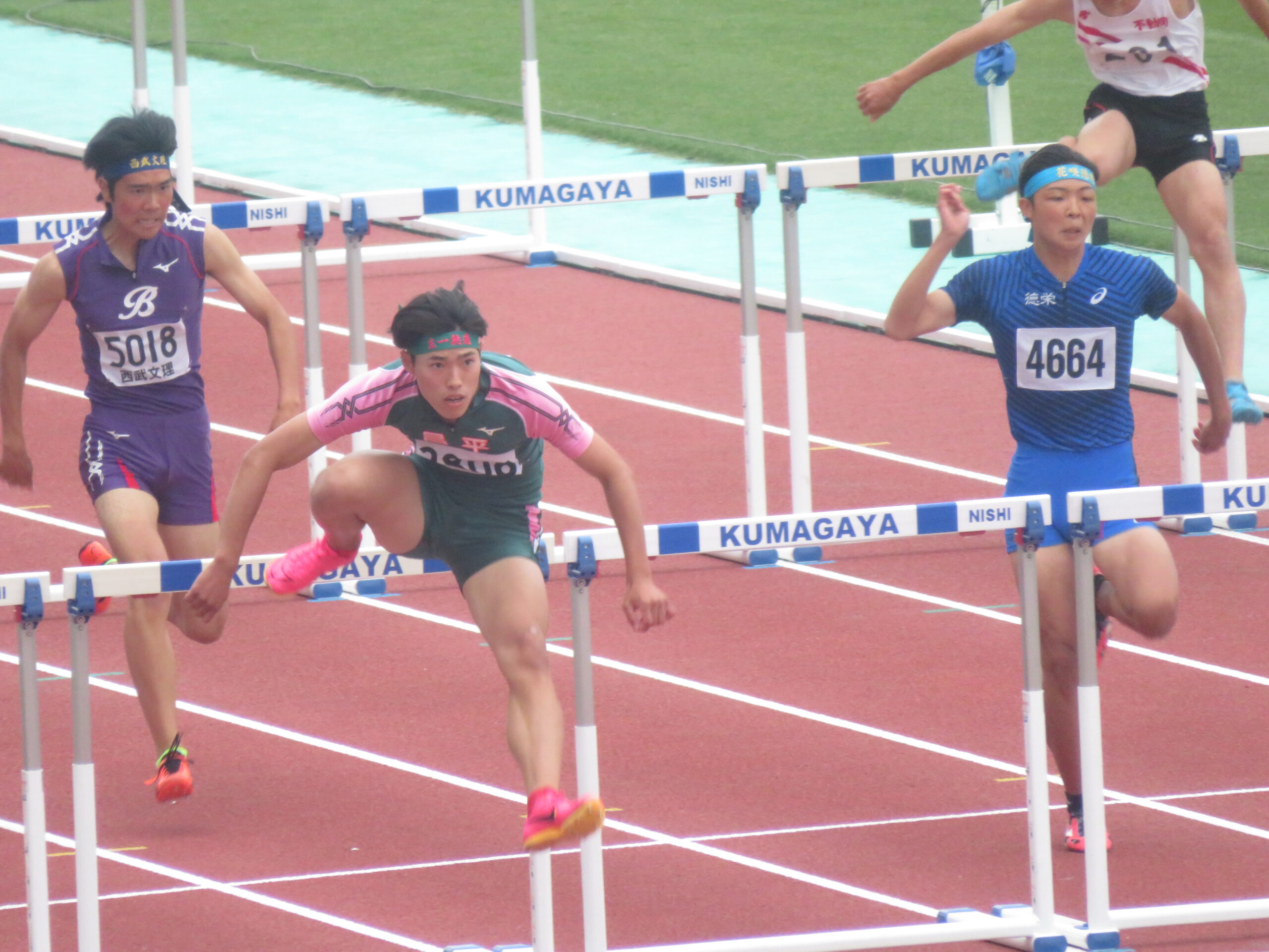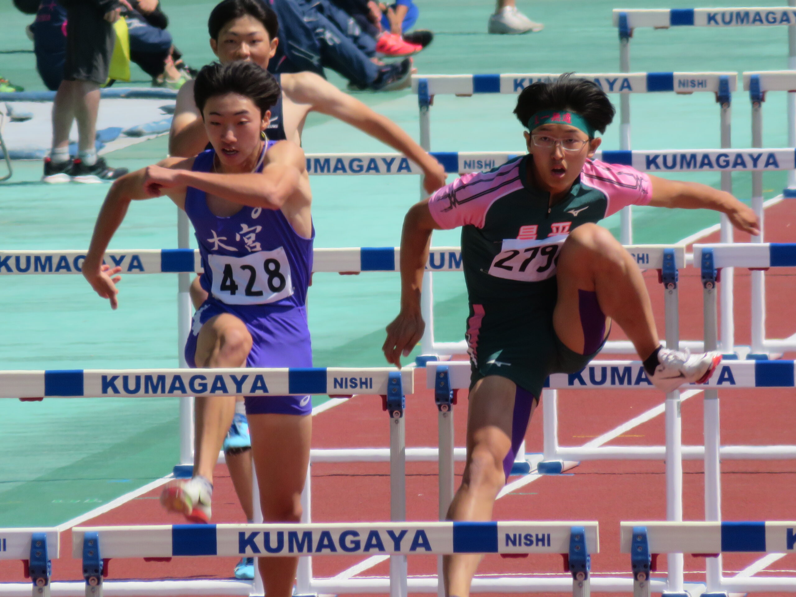 5月10日(木)から13日(土)の4日間「熊谷スポーツ文化公園陸上競技場」にて埼玉県高校総体陸上競技大会が行われ男子陸上部から13種目に出場しました。男子110mHで堀井永遠[2:草加中出身]が14秒82で優勝、男子走高跳で中村楓馬[3:上尾原市中出身]が2m05を跳び優勝するなど4種目で入賞する事が出来ました。入賞した選手10名は6月16日から山梨県小瀬で行われる関東大会へ出場します。関東大会は、31年連続31回目の出場です。