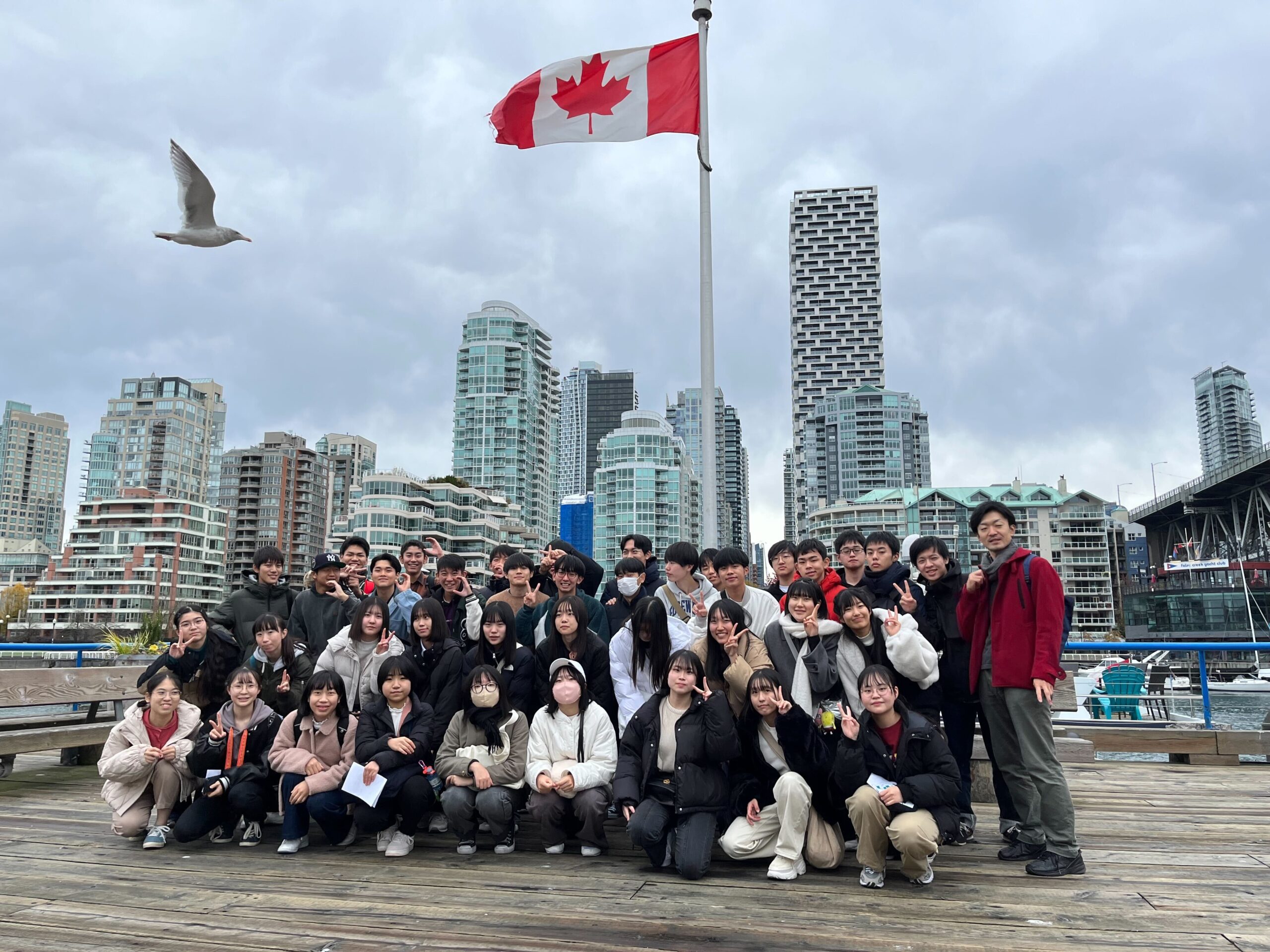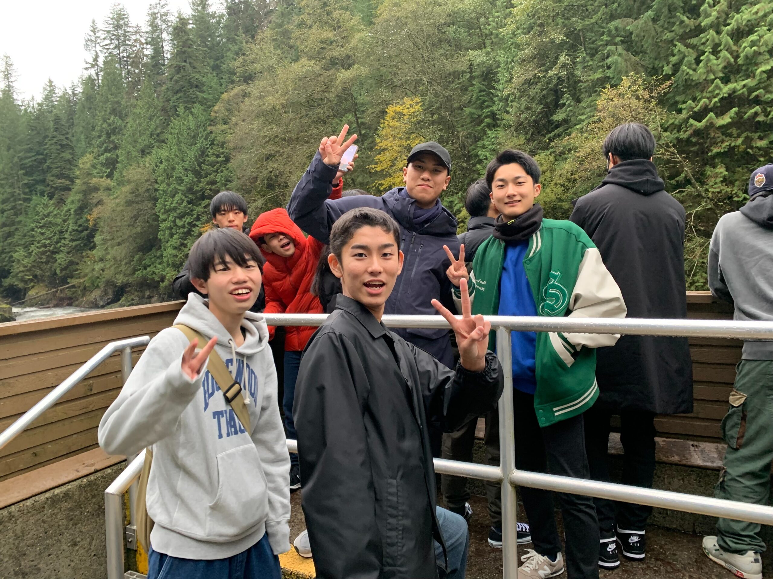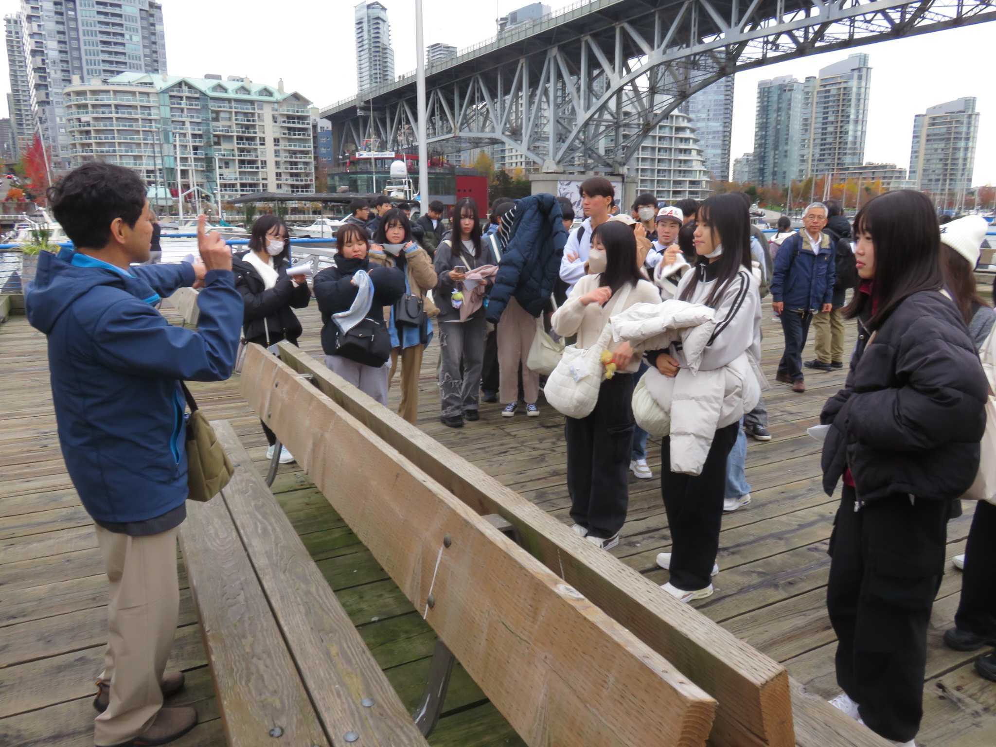 先週のA班と入れ替わりでB班(5・6・8・9組)の修学旅行が始まりました。第1日目は3時30分に成田空港に集合し搭乗手続き、夜間のフライトを終え日付変更線を越えバンクーバーに到着。空港での手続きのほとんどが機械化されており、悪戦苦闘しましたが無事全員到着しました。到着後、グランビルアイランド(日本の赤レンガ倉庫のような場所)で散策とショッピングを楽しみ、昼食はボリューム満点のバーガーランチ。その後、サーモンハッチェリーに行き、カナダの大自然とサーモンの人工繁殖施設を見学しました。夕方4時30分ごろホテルに戻り、5時30分に夕食会場の中華料理レストランに行きました。生徒たちは体調を崩す者もなく海外修学旅行を楽しんでいます。明日はC 班が合流しバンクーバー市内でのホームステイが始まります。