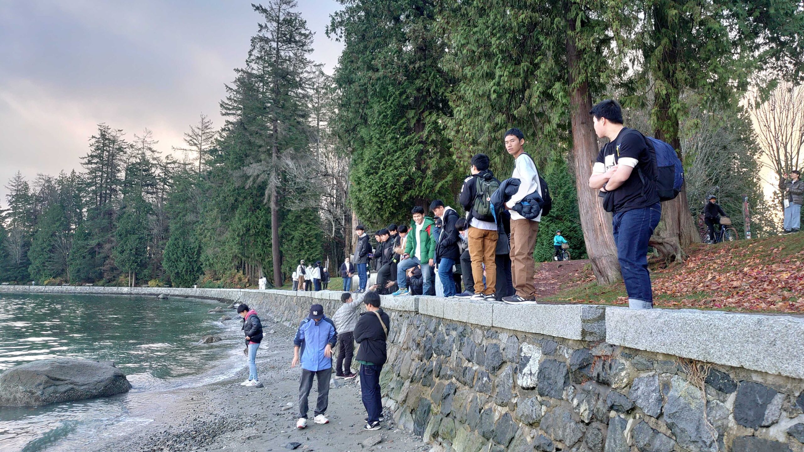 高校修学旅行B班5日目とÇ班4日目は同じ行程でした。朝、各地区の集合場所でホストファミリーとお別れをし、スタンレーパークを見学してクラス写真を撮影。その後、ホテルに荷物を置いて班別自由研修を行いました。3泊の短いホームステイでしたが別れを惜しむ家庭がたくさん見受けられました。班別自由研修ではバンクーバー市内を散策したくさんのお土産を購入していました。