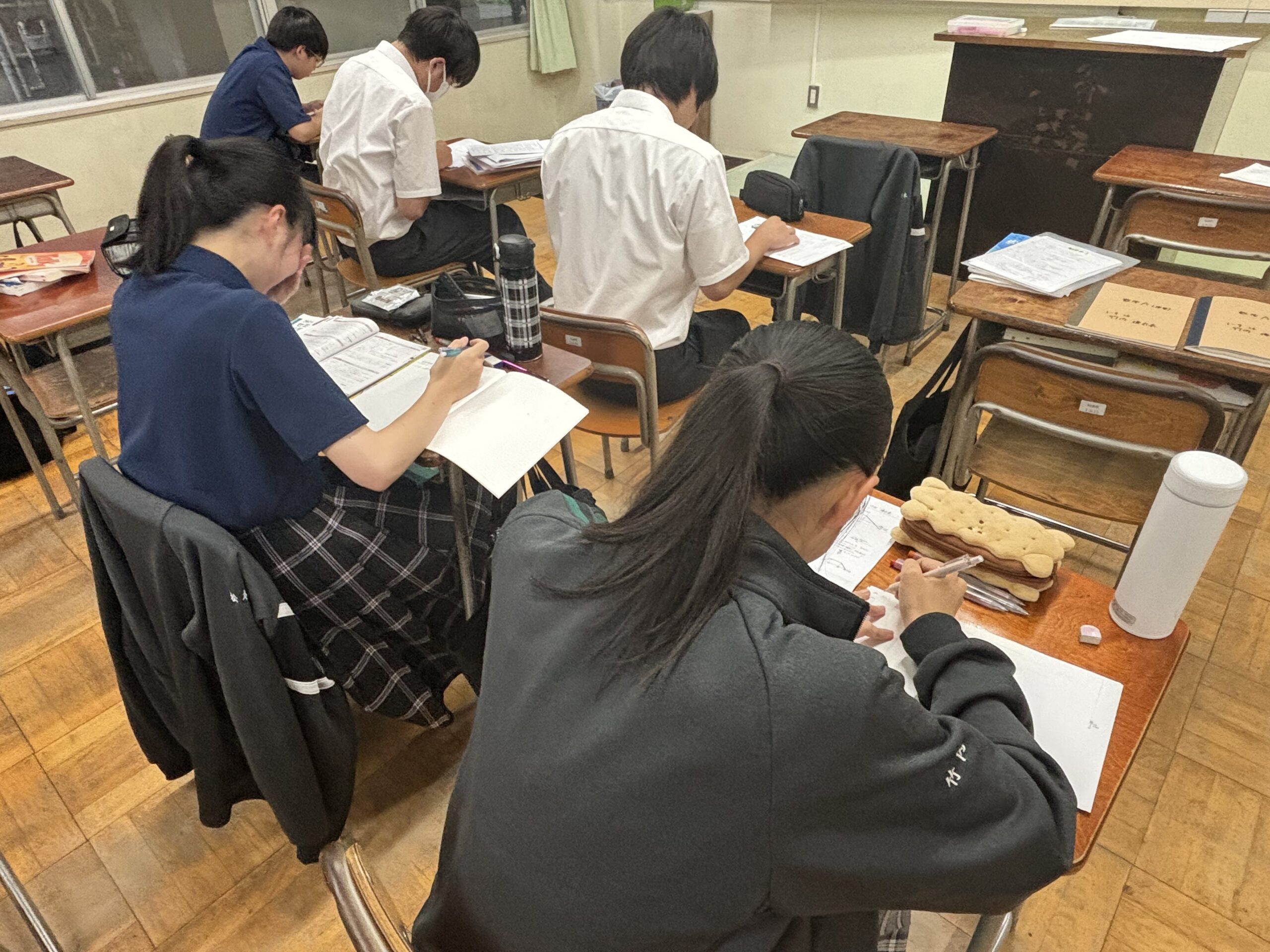 1学期の学習の総まとめとなる試験に向けて、準備に余念がない生徒たち。