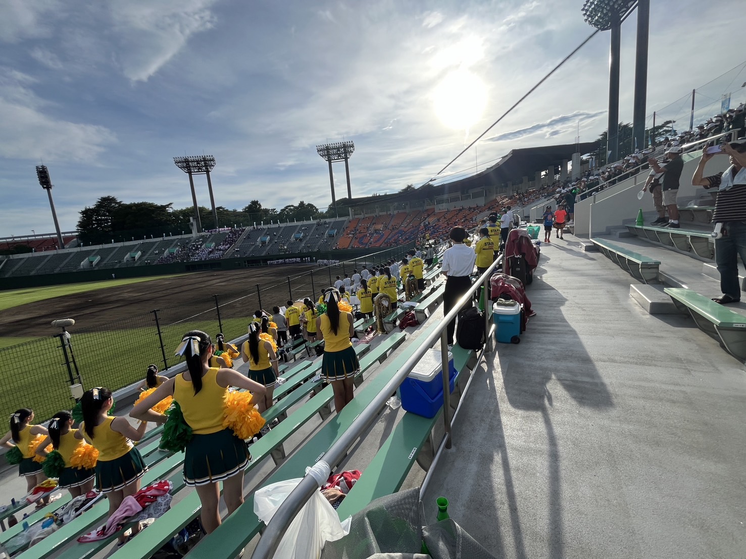 本日から吹奏楽部とチアリーディング部の皆さんが応援に加わってくださり、力強い応援を選手に届けることができました。