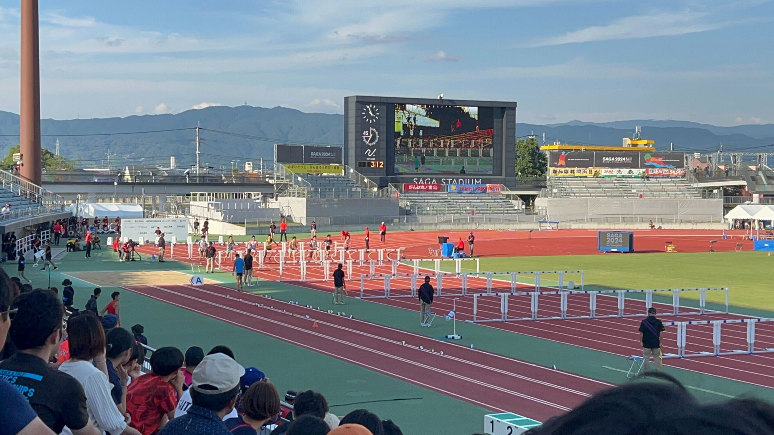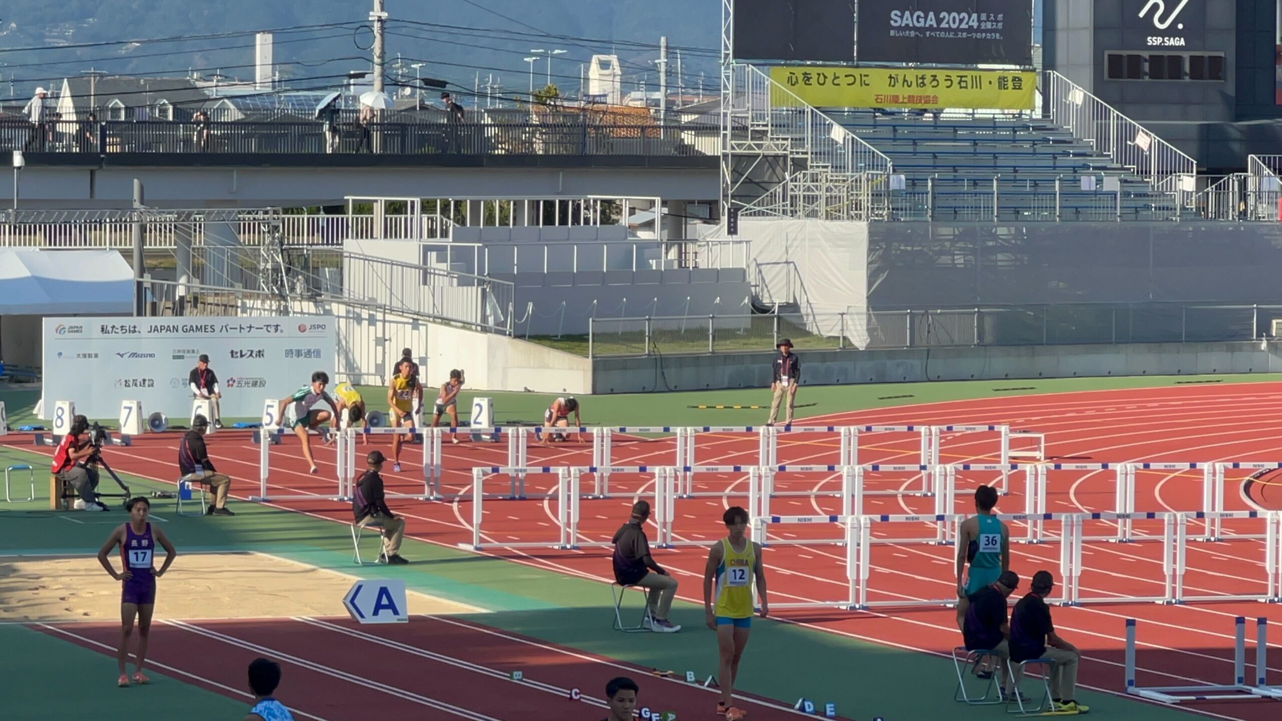 10月11日(金曜日)から佐賀県「SAGAサンライズパーク陸上競技場」で行われた第78回国民スポーツ大会男子少年B110mJHに出場した森野桜佑[1:草加花栗中出身]が14秒39で走り予選2着で通過。翌日の決勝では14秒24で7位入賞を果たしました。