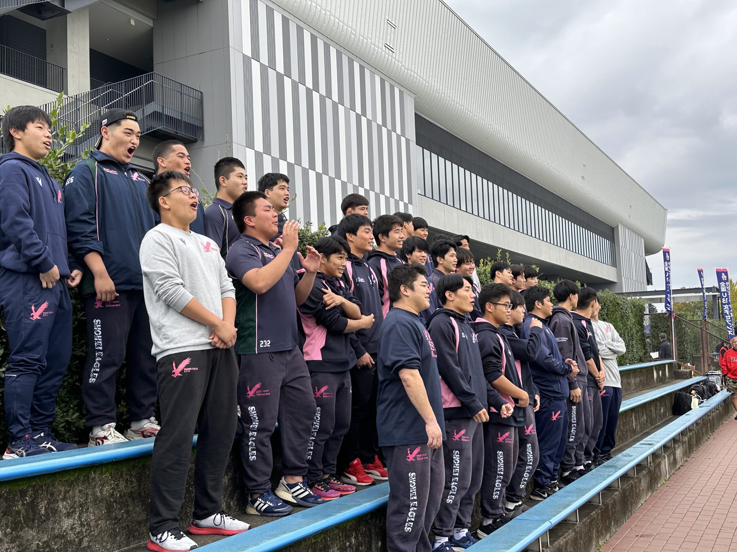 また、本日の試合は熊谷ラグビー場で行われたこともあり、男子ラグビー部員も応援に駆け付けました。