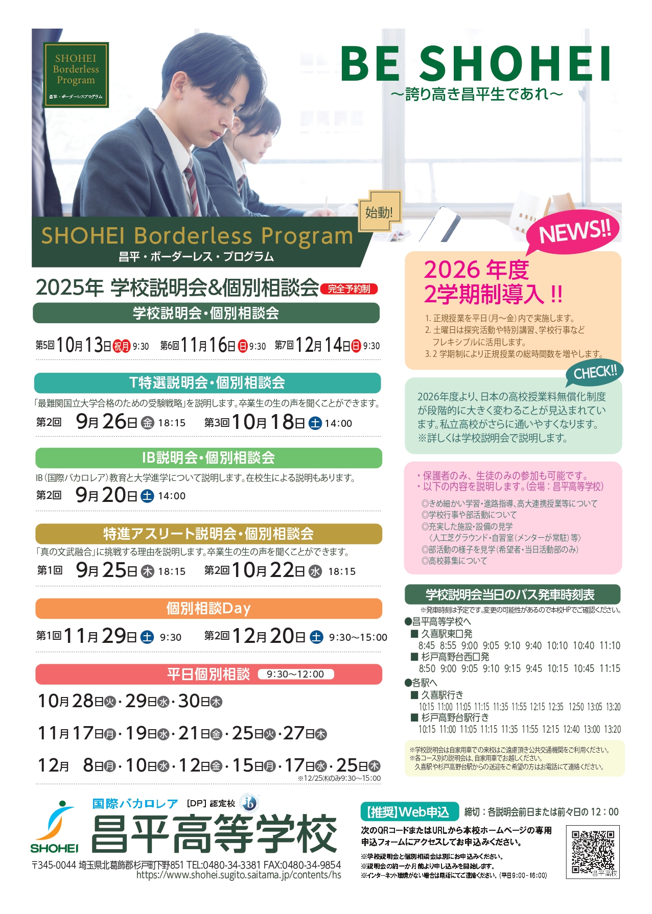 11月16日(日)は第6回学校説明会・個別相談会を実施します。初めて学校説明会にご参加される方で個別相談をご希望される場合は、説明会終了後に行われる10時50分以降の個別相談をご予約ください。
