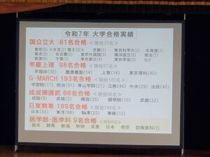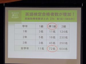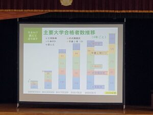 説明会では、卒業生の大学合格実績や、主要大学合格者数の推移について、そしてパワーイングリッシュプロジェクトによる英語検定を始めとした資格検定試験における本校のサポート・入試における重要性についてなど、昌平高校の取り組みをご説明しました。