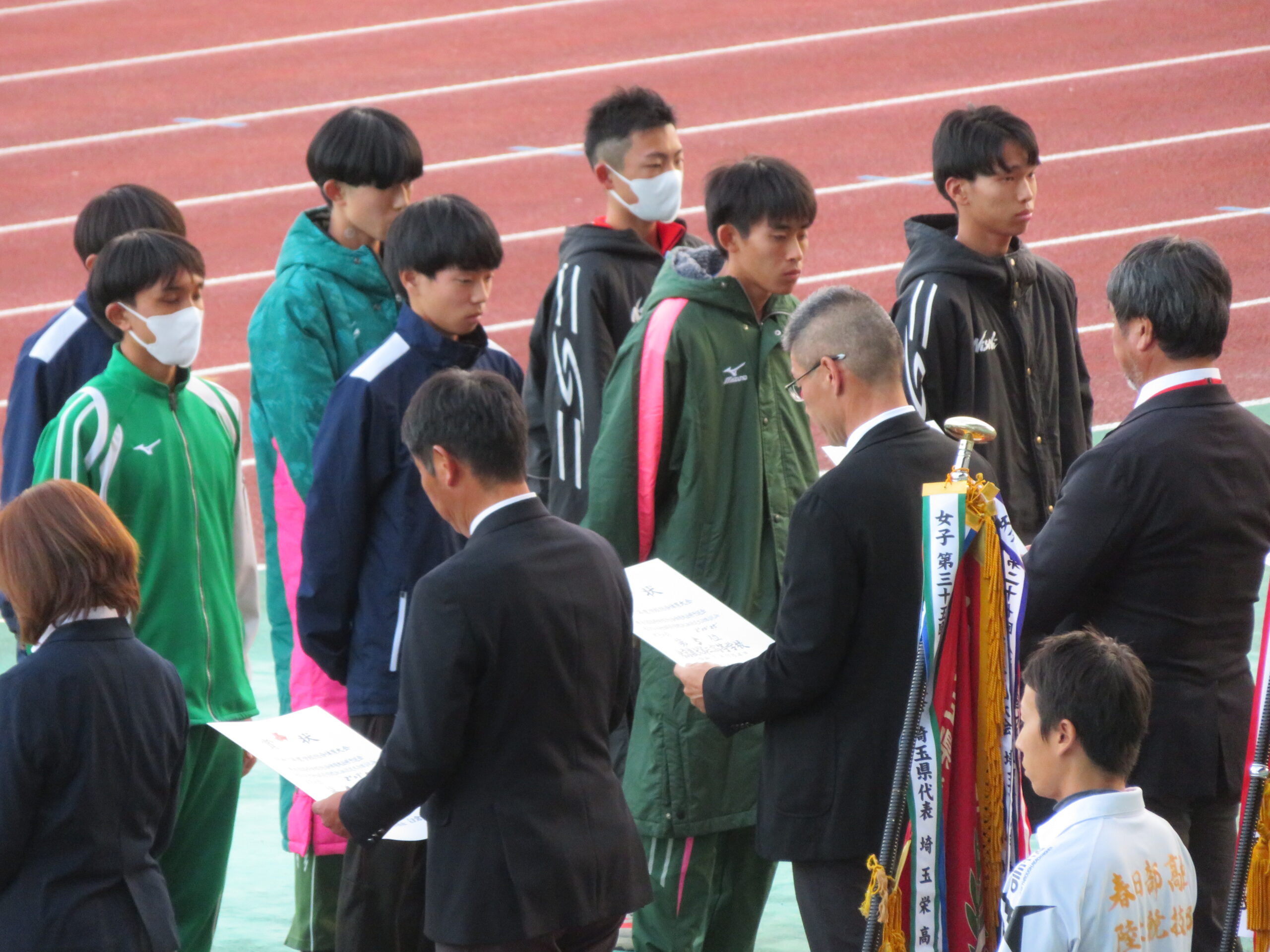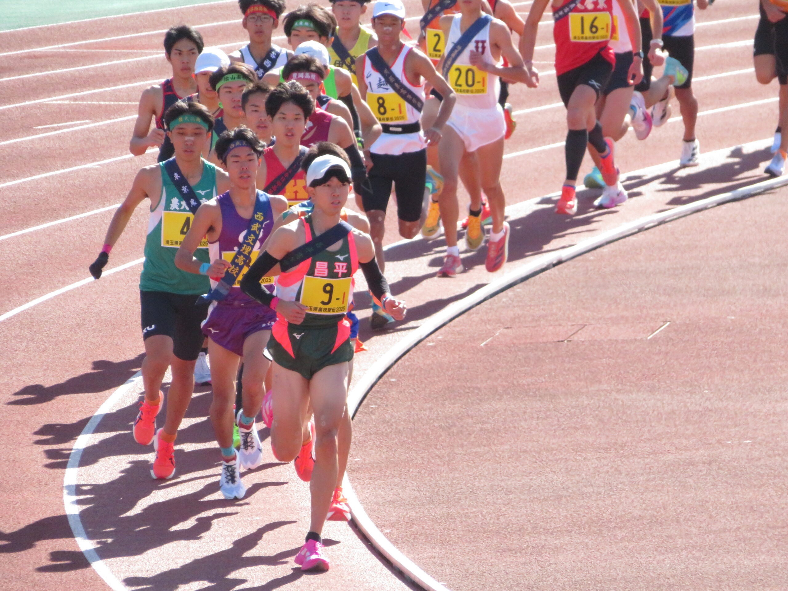 11月4日[火曜日]熊谷スポーツ文化公園陸上競技場を発着とした令和7年度男子76回・女子37回「全国高等学校駅伝競走大会埼玉県予選会」が行われました。気温14℃、前日の強風も収まり絶好のコンディションでスタートを切りました。目標としていた関東大会出場を達成する事は出来ませんでしたが選手達は最後まで諦めず襷を繋ぎました。今回の総合タイム2時間13分26秒はPB[チーム新記録]。その他3区[8.0975㎞]を24分44秒(区間2位)で走った岩岡一喗[2:昌平中出身]・4区[8.0975㎞]を25分08秒(区間3位)で走った並木優和[1:白岡南中出身]の頑張りは光ました。来年度は更にタイムを縮め初の関東高校駅伝出場を目指します。