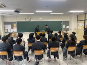 その後、IBで設定されている10個の学習者像のうち、「知識のある人」「コミュニケーションができる人」として認められる生徒の表彰がありました。これをきっかけに、「自分はどのような能力を高めているか」を振り返ってほしいと思います。