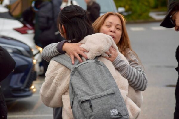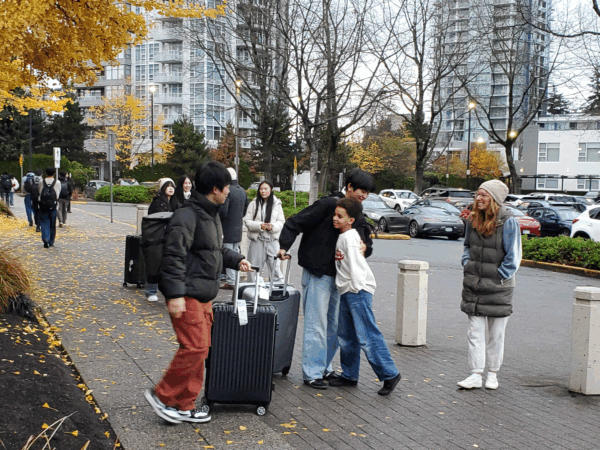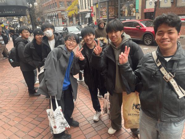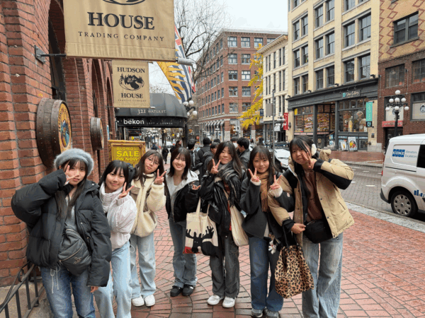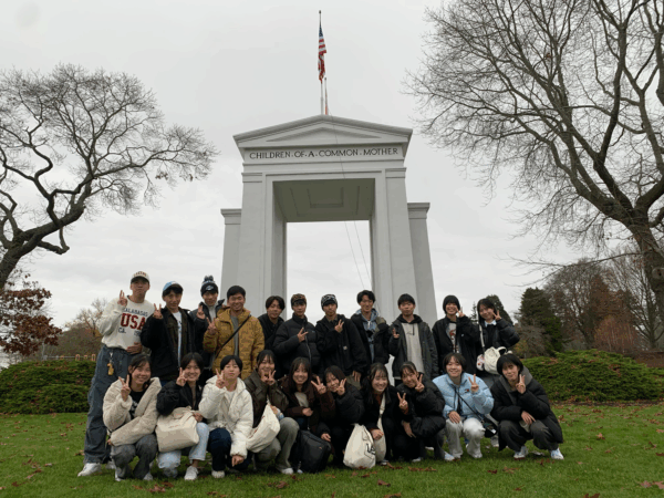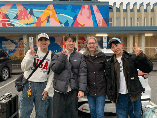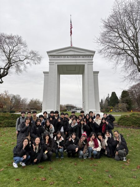 ホストファミリーとお別れし,本日から再びみんな揃っての行動となりました。今日はアメリカとの国境にあるピースアーチ公園を観光したのち,午後は班別での市内研修を行いました。