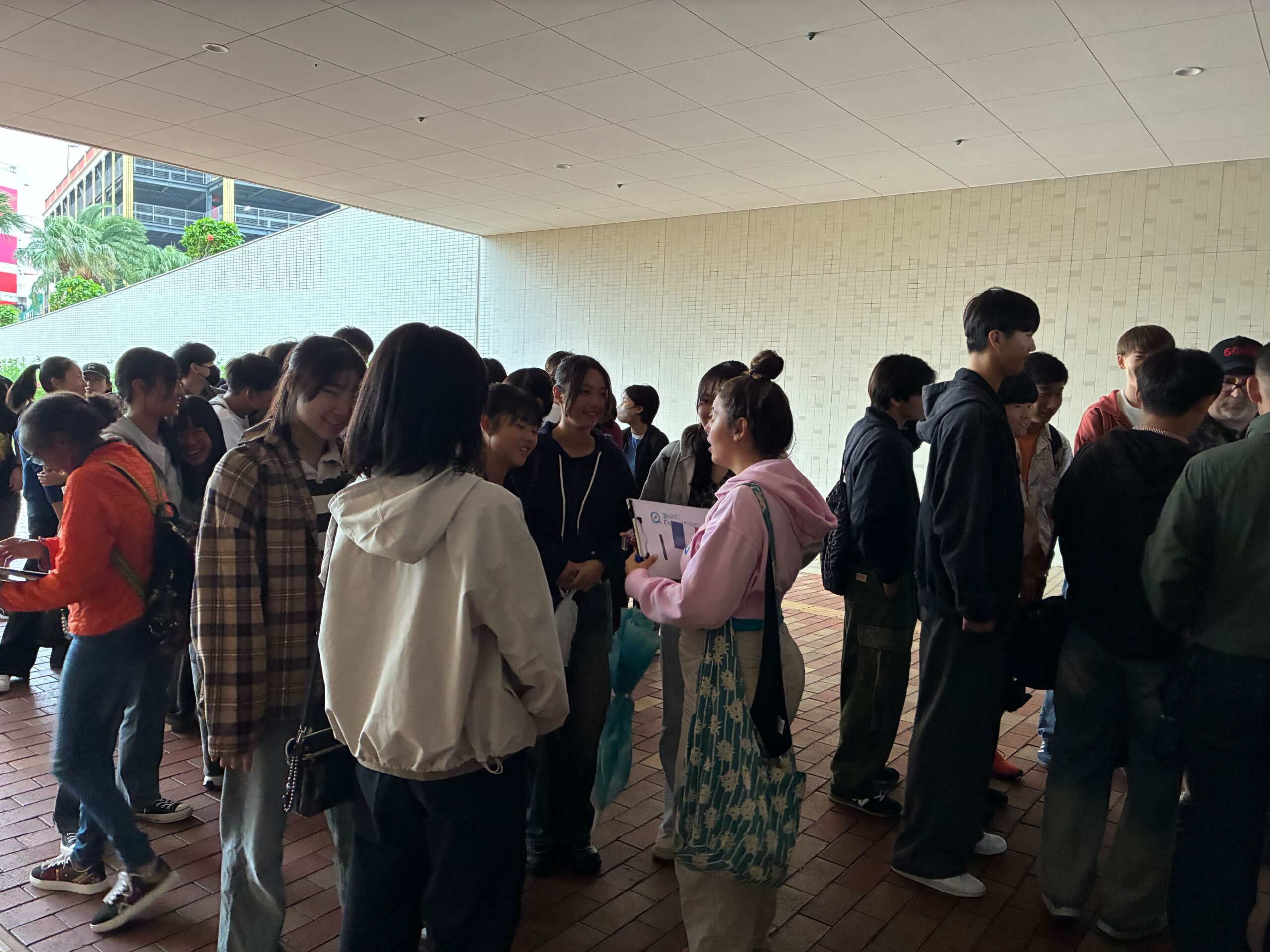 3泊4日の沖縄修学旅行の2日目が終了しました。午前中はアメリカンビレッジにて生徒と外国人留学生がグループを組んで「まちなかEnglish Quest」を行いました。会話は基本的に英語のみで、様々なミッションをクリアしていくまちなかEnglish Quest。普段使いなれない英語を使ってコミュニケーションをとりながら取り組むことができました。