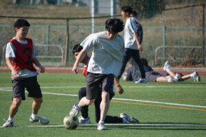 男子はサッカーとドッジボールに挑戦し、パスをつないでゴールを狙う姿や、最後まであきらめずボールを追いかける姿がとても印象的でした。クラスの団結力が試される場面も多く、試合後には自然と笑顔や励ましの言葉が広がっていました。