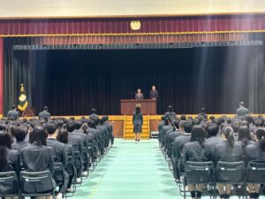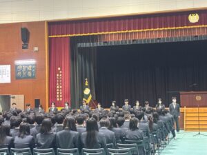 明日卒業式を控えた45期生が本日登校し、賞状授与式と同窓会入会式が行われました。