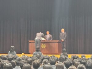 賞状授与式では、7部活に生徒会特別功労賞が贈られ、また2名の生徒には特別功労賞が贈られました。