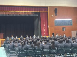 各クラスの幹事生徒も紹介され、代表幹事の坂山君からは挨拶をもらいました。